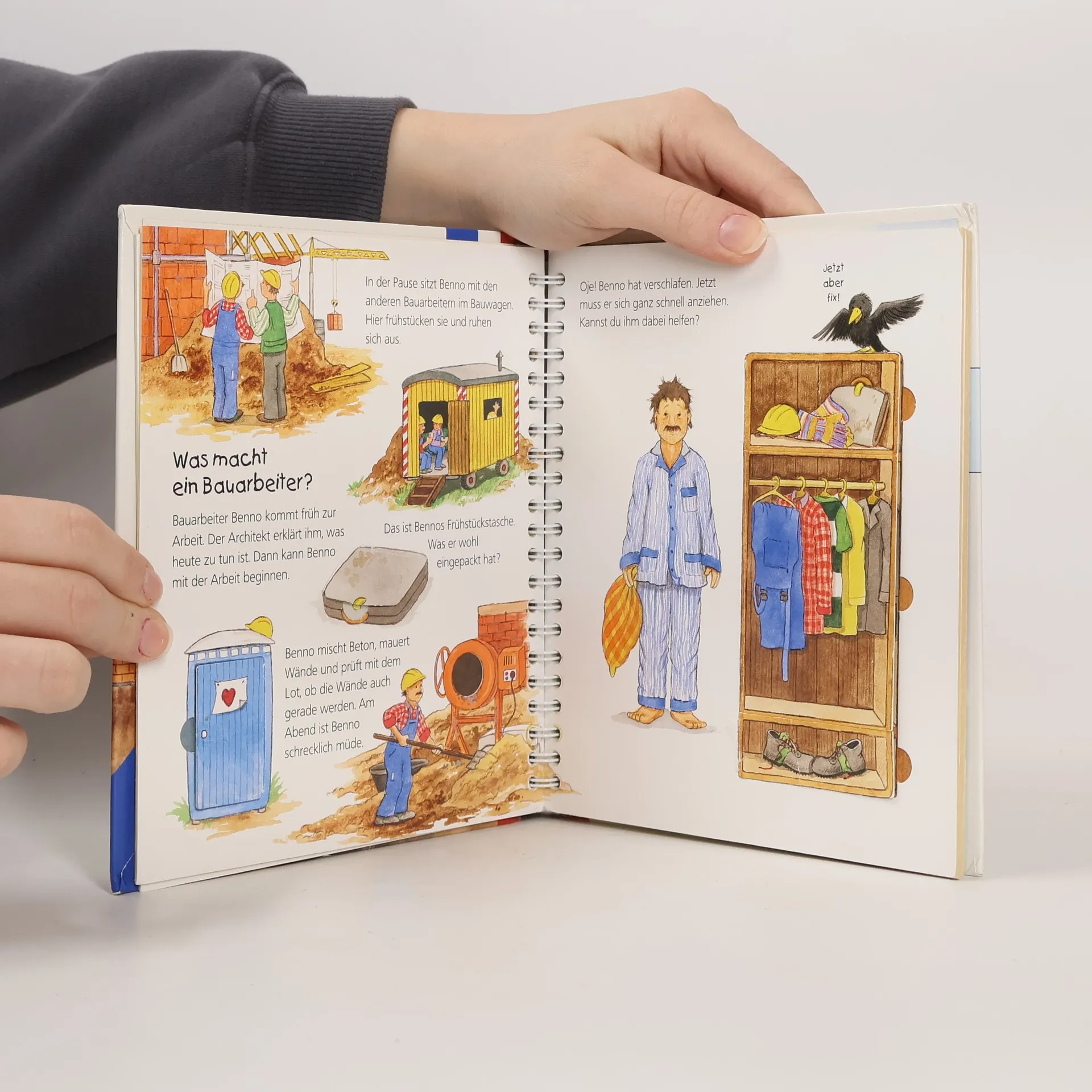 Wer mit Kindern am Zaun einer Baustelle steht, weiß, dass Bagger, Kran und Betonmischer die Augen der Kleinen zum Leuchten bringen. Wie wird ein Haus gebaut? Welche Maschinen kommen zum Einsatz? Was trägt ein Bauarbeiter? Dieses Buch beantwortet spielerisch erste Kinderfragen zur Baustelle mit vielen Klappen. Es führt Kinder ab 2 Jahren in die Welt der Baufahrzeuge, -arbeiten und -berufe ein. Die Sachbuchreihe für Kinder von 2-4 Jahren fördert die Neugier und beantwortet alltägliche Fragen: Wann kommt die Feuerwehr? Was machen die Tiere im Winter? Warum ist Zähneputzen wichtig? Die Reihe bietet kindgerechte Erklärungen zu verschiedenen Themen aus ihrem Alltag und ist mit viel Liebe zum Detail gestaltet. Die Bücher sind speziell für kleine Hände und deren Bedürfnisse konzipiert. Klare, liebevolle Bilder, kurze Texte und handliche Klappen, die Bewegungen veranschaulichen, ermöglichen es Kindern, selbstständig zu entdecken. Der Spaß am eigenhändigen Erkunden, die liebevolle Gestaltung und die hochwertige Ausstattung garantieren langanhaltende Freude an jedem Buch.