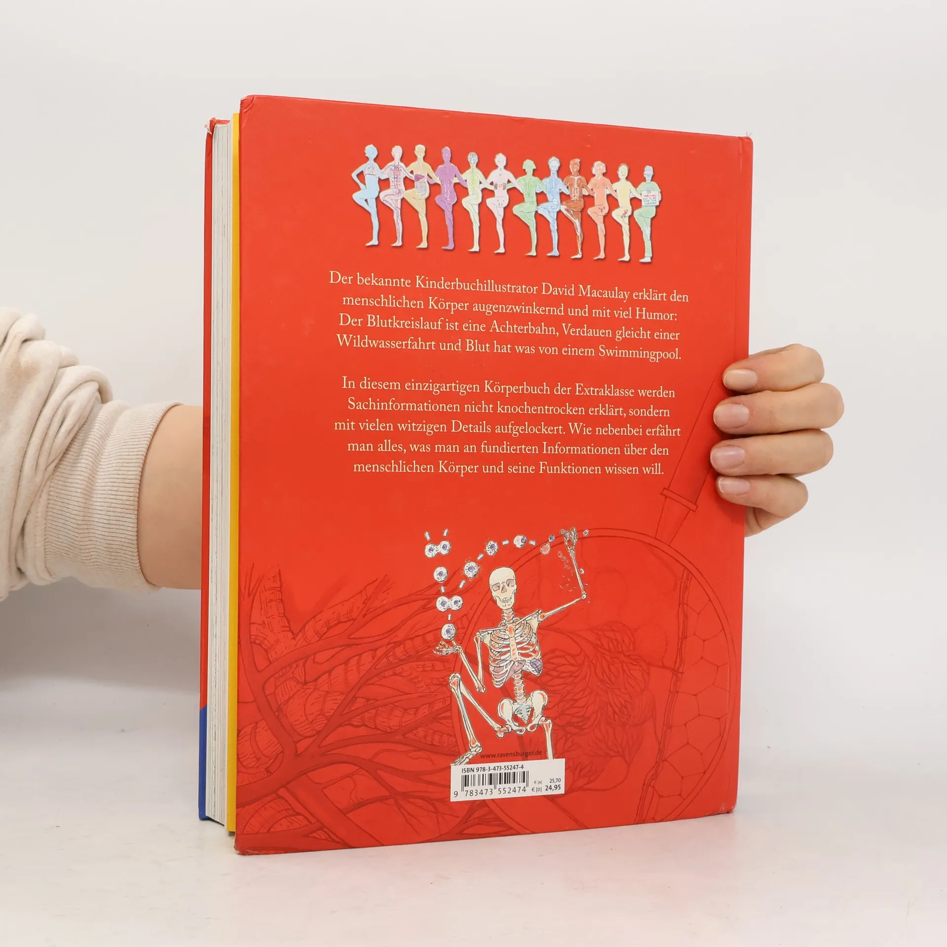 David Macaulay, ein bekannter Kinderbuchillustrator, erklärt den menschlichen Körper auf humorvolle Weise. Der Blutkreislauf wird als Achterbahn beschrieben und das Verdauen als Wildwasserfahrt. Mit witzigen Details werden Sachinformationen lebendig und unterhaltsam vermittelt.