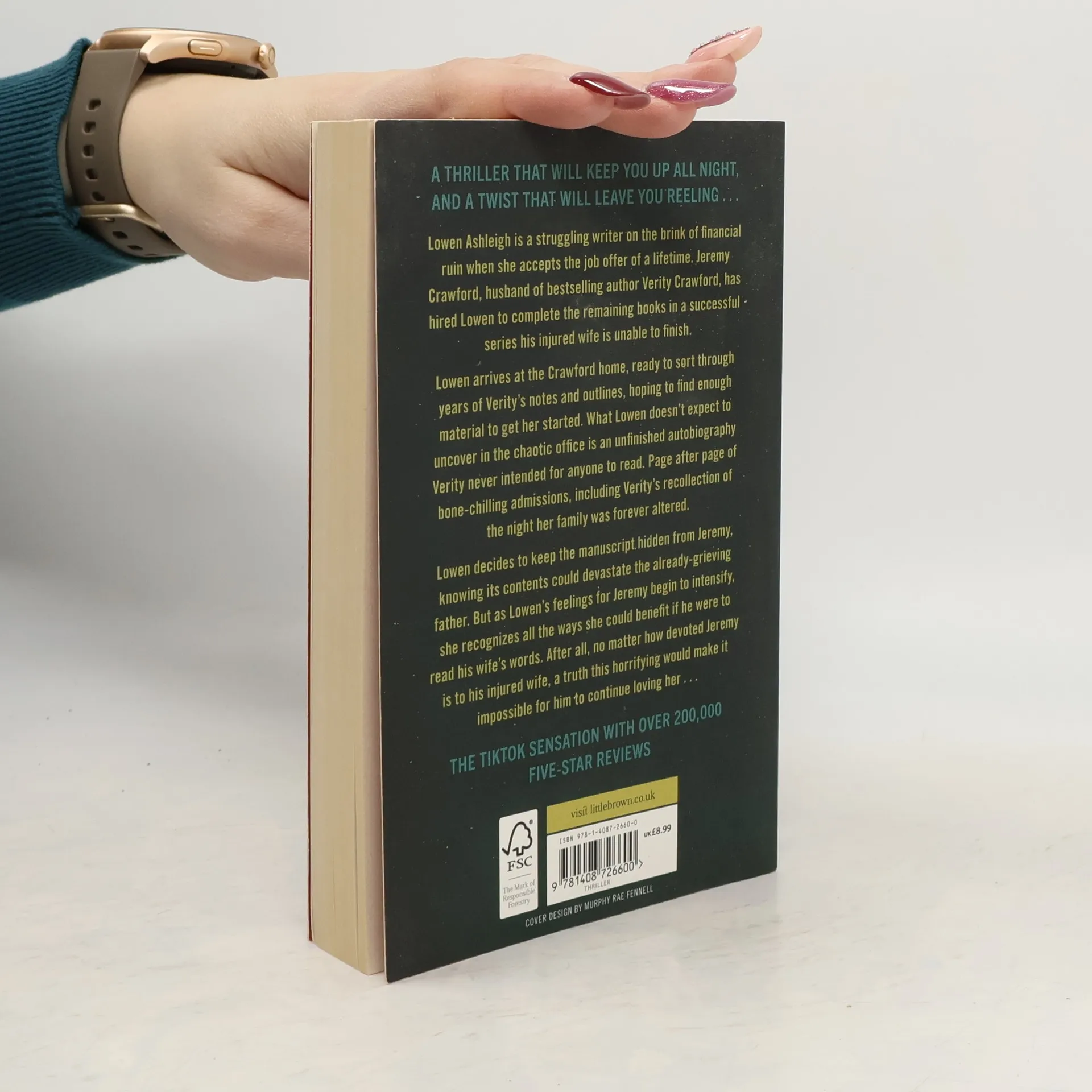 A thriller that will keep you up all night, and a twist that will leave you reeling... Lowen Ashleigh is a struggling writer on the brink of financial ruin when she accepts the job offer of a lifetime. Jeremy Crawford, husband of bestselling author Verity Crawford, has hired Lowen to complete the remaining books in a successful series his injured wife is unable to finish. Lowen arrives at the Crawford home, ready to sort through years of Verity's notes and outlines, hoping to find enough material to get her started. What Lowen doesn't expect to uncover in the chaotic office is an unfinished autobiography Verity never intended for anyone to read. Page after page of bone-chilling admissions, including Verity's recollection of the night their family was forever altered. Lowen decides to keep the manuscript hidden from Jeremy, knowing its contents would devastate the already-grieving father. But as Lowen's feelings for Jeremy begin to intensify, she recognizes all the ways she could benefit if he were to read his wife's words. After all, no matter how devoted Jeremy is to his injured wife, a truth this horrifying would make it impossible for him to continue loving her . . .