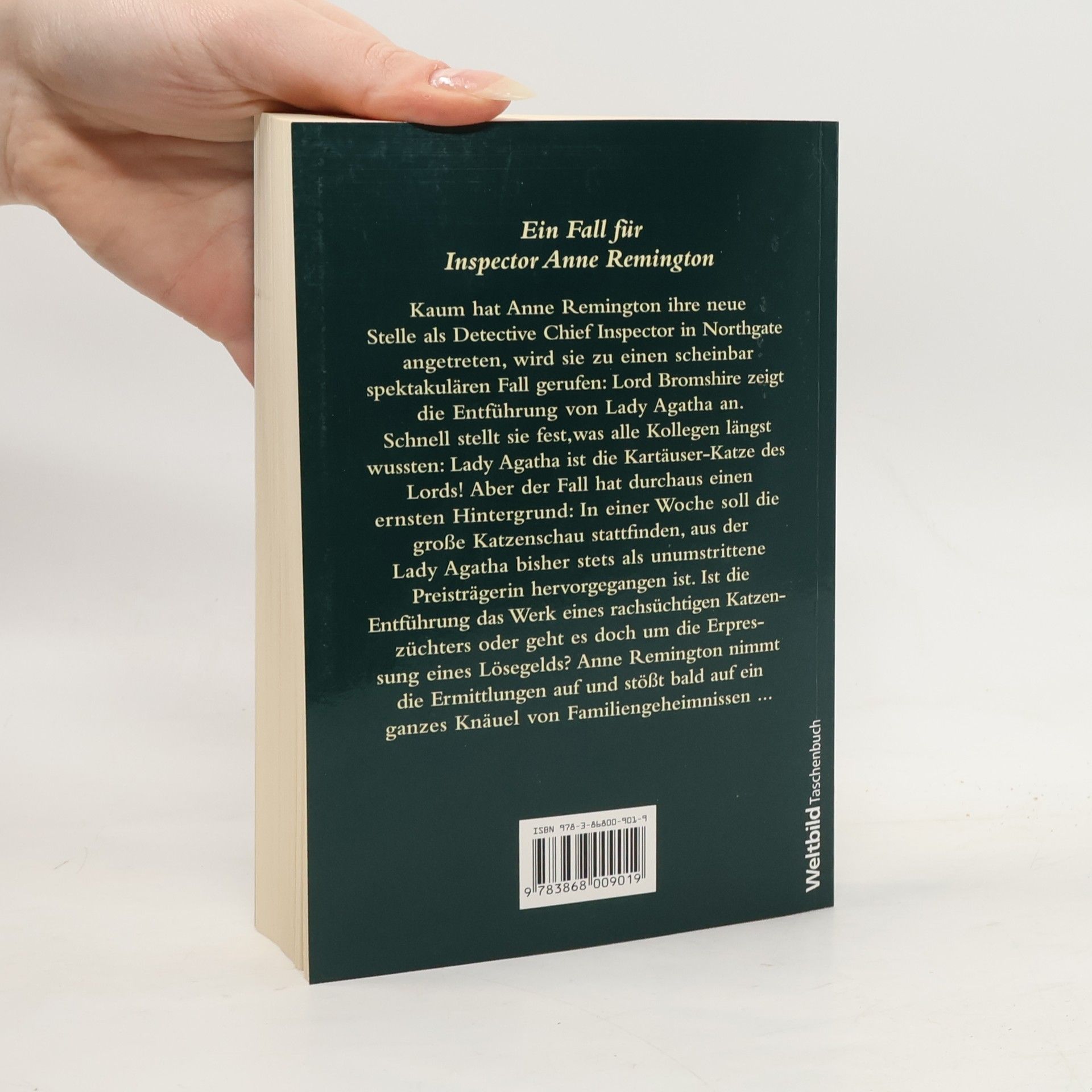 Ein Fall für Inspector Anne RemingtonKaum hat Anne Remington ihre neue Stelle als Detective Chief Inspector in Nortgate angetreten, wird sie zu einem scheinbar spektakulären Fall gerufen: Lord Bromshire zeigt die Entführung von Lady Agatha an. Schnell stellt sie fest, was alle Kollegen längst wussten: Lady Agatha ist die Kartäuser-Katze des Lord. Aber der Fall hat durchaus einen ernsten Hintergrund: In einer Woche soll eine große Katzenschau stattfinden, aus der Lady Agatha bisher stets als unumstrittene Preisträgerin hervorgegangen ist. Ist die Entführung des Werk eines rachsüchtigen Katzenzüchters oder geht es doch um die Erpressung von Lösegeld? Anne nimmt die Ermittlungen auf und stößt bald auf eine ganzes Knäuel von Familiengeheimnisen ...