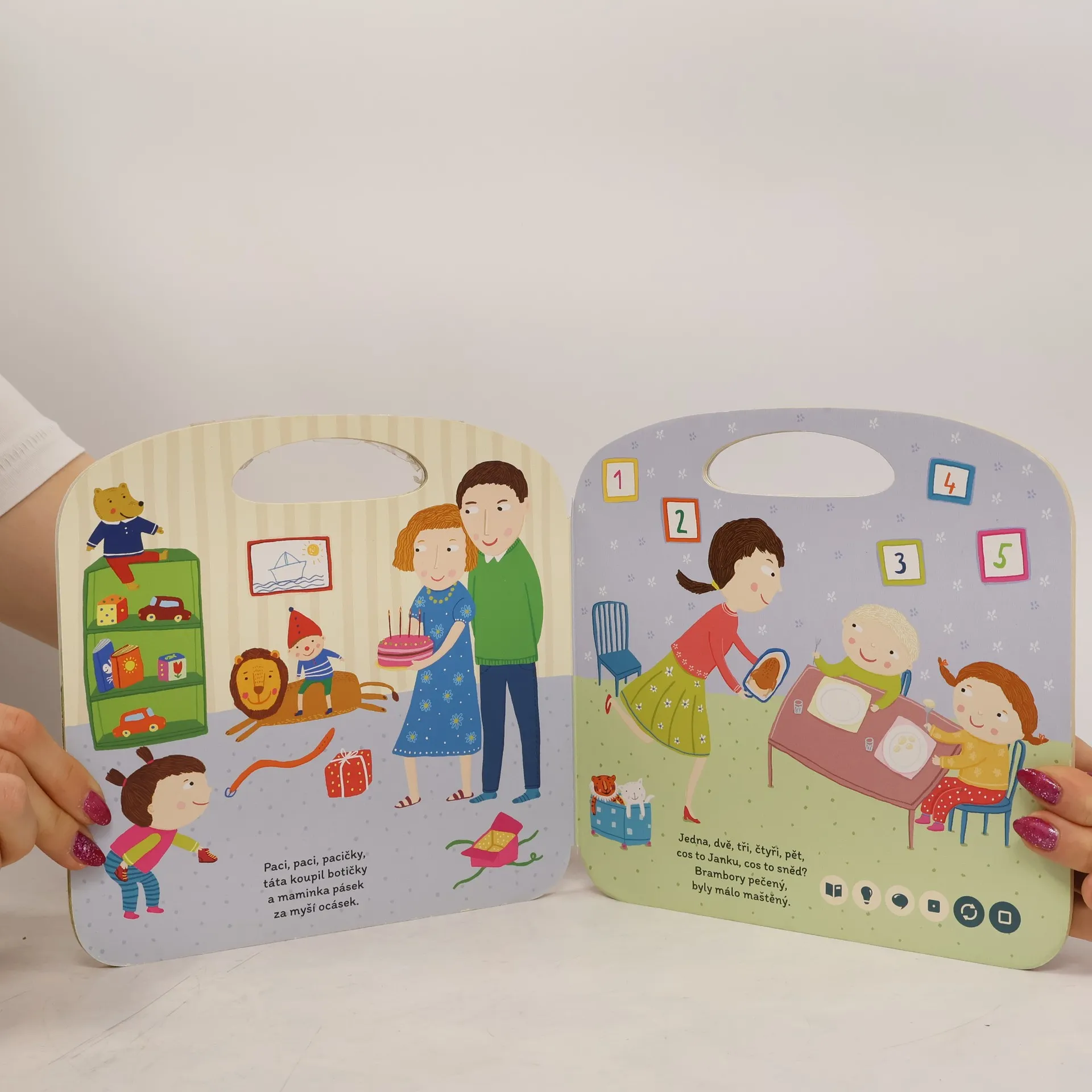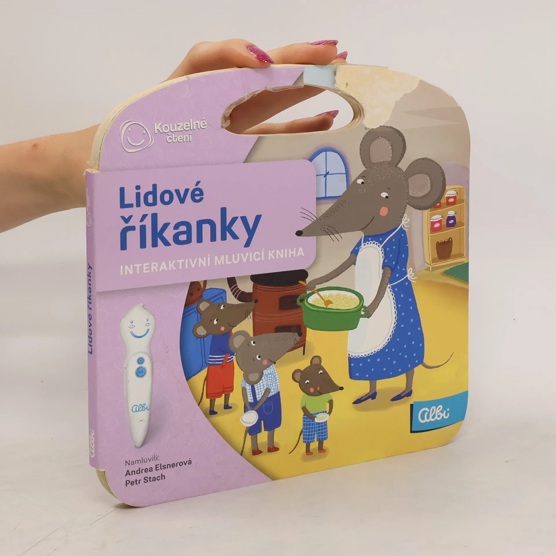 Knížka dětských lidových říkanek pro použití s elektronickou "mluvící" tužkou.