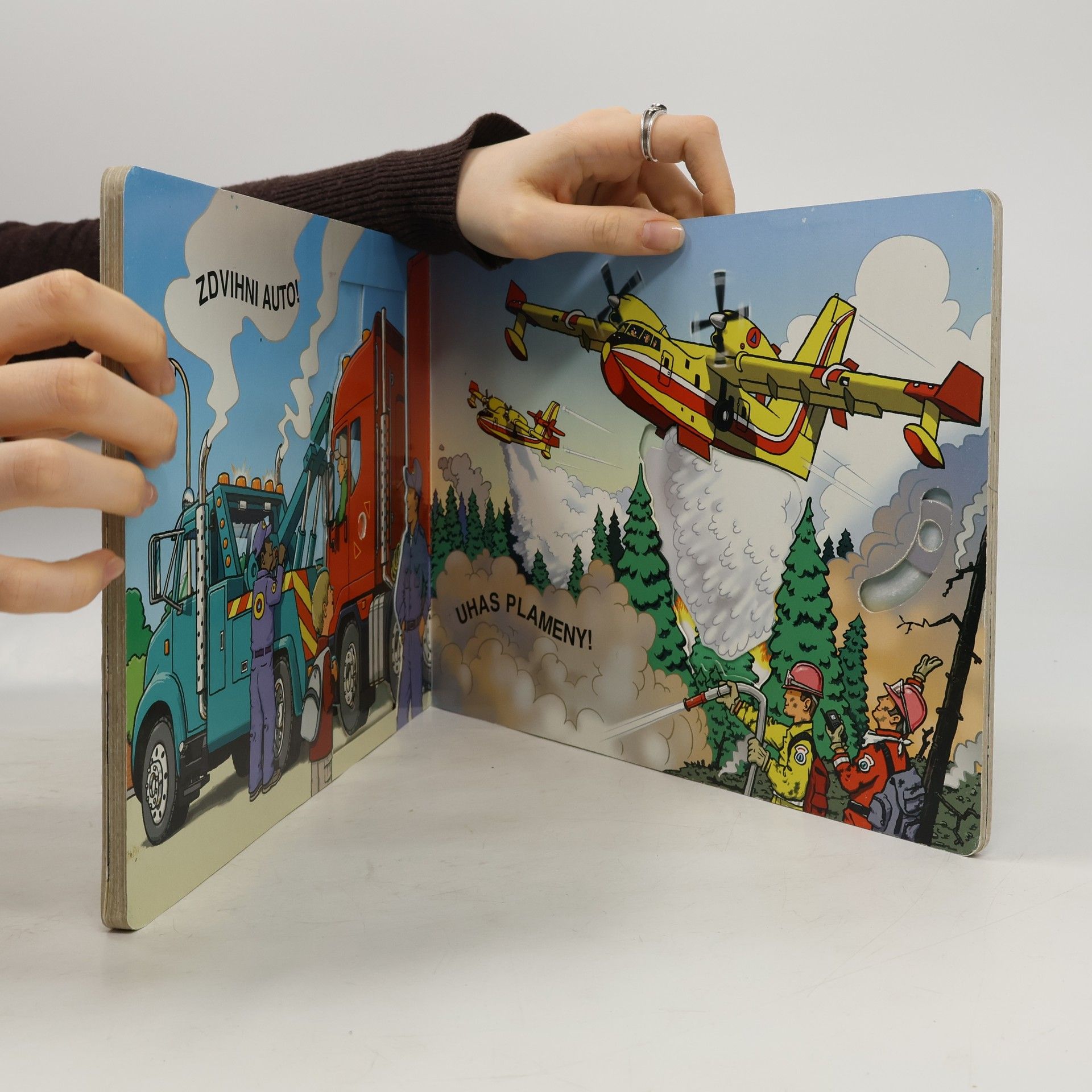 V této knížce najdete různé záchranářské prostředky, které obsahují spoustu pohyblivých částí! Děti tak mohou samy pomáhat při záchranných akcích!