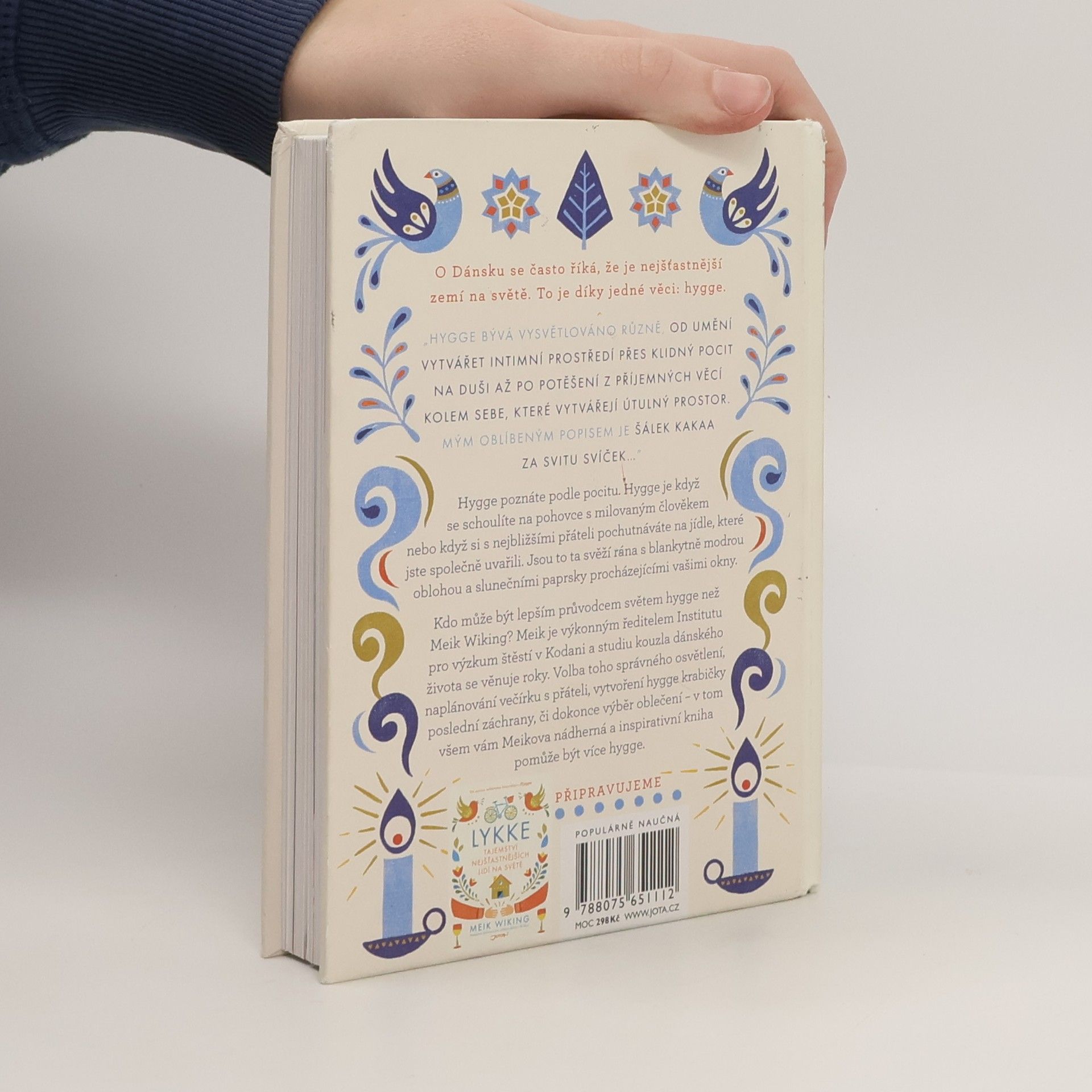 Proč jsou Dánové nejšťastnějšími lidmi na světě? Odpovědí je hygge, říká Meik Wiking, ředitel Institutu pro výzkum štěstí v Kodani. Hygge je pocit, který zažíváte během bouřky, když jste v pohodlných ponožkách schoulení na pohovce, přikrytí měkkou dekou. Je to ten pocit, když u stolu osvětleném svíčkami společně se svými milovanými jíte své oblíbené jídlo a povídáte si. Je to pocit, který se vás zmocní, když se s šálkem oblíbené kávy v ruce díváte na rudé ranní světlo na jasné modré obloze. Hygge je o atmosféře a prožitku. Je to o sdílení se s lidmi, které máme rádi. Pocit domova. Pocit bezpečí. Pocit vnitřního klidu a blaženosti. Tato kniha vám nabídne rady a tipy, jak know-how nejšťastnějšího národa na světě můžete využít ve svém životě i vy. • Udělejte si pohodlí. Dejte si přestávku. • Buďte tady a teď. Vypněte telefony. • Ztlumte světlo. Zapalte svíčky. • Nalijte si víno. Pusťte si svůj oblíbený film. • Budujte vztahy. Udělejte si čas na své blízké. • Přestaňte jíst jen a pouze zdravě. Dort je zcela rozhodně hygge. • Žijte dnes tak, jako by už zítřek nikdy neměl přijít.
