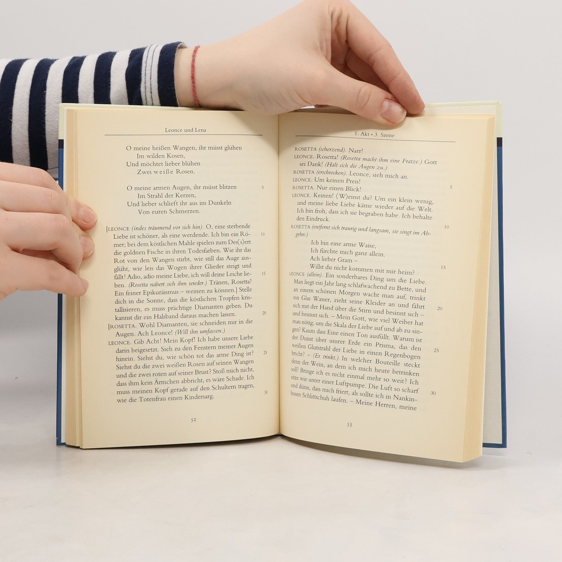 Der einfache Soldat Franz Woyzeck lebt am Rande einer übermächtigen Gesellschaft. Gedemütigt, missbraucht und von seiner Freundin betrogen, verfällt er zunehmend dem Wahnsinn. Büchners erschütterndes Drama gehört zu den einflussreichsten Bühnenstücken der deutschen Literatur und wurde von Werner Herzog mit Klaus Kinski als Woyzeck verfilmt. 'Leonce und Lena' ist dagegen eine wunderbar leichte Satire auf die deutsche Kleinstaaterei und das gelangweilte Nichtstun des Adels zur Zeit des Deutschen Bundes: Prinz und Prinzessin sollen heiraten, lehnen sich auf und werden doch vom Schicksal zusammengeführt.