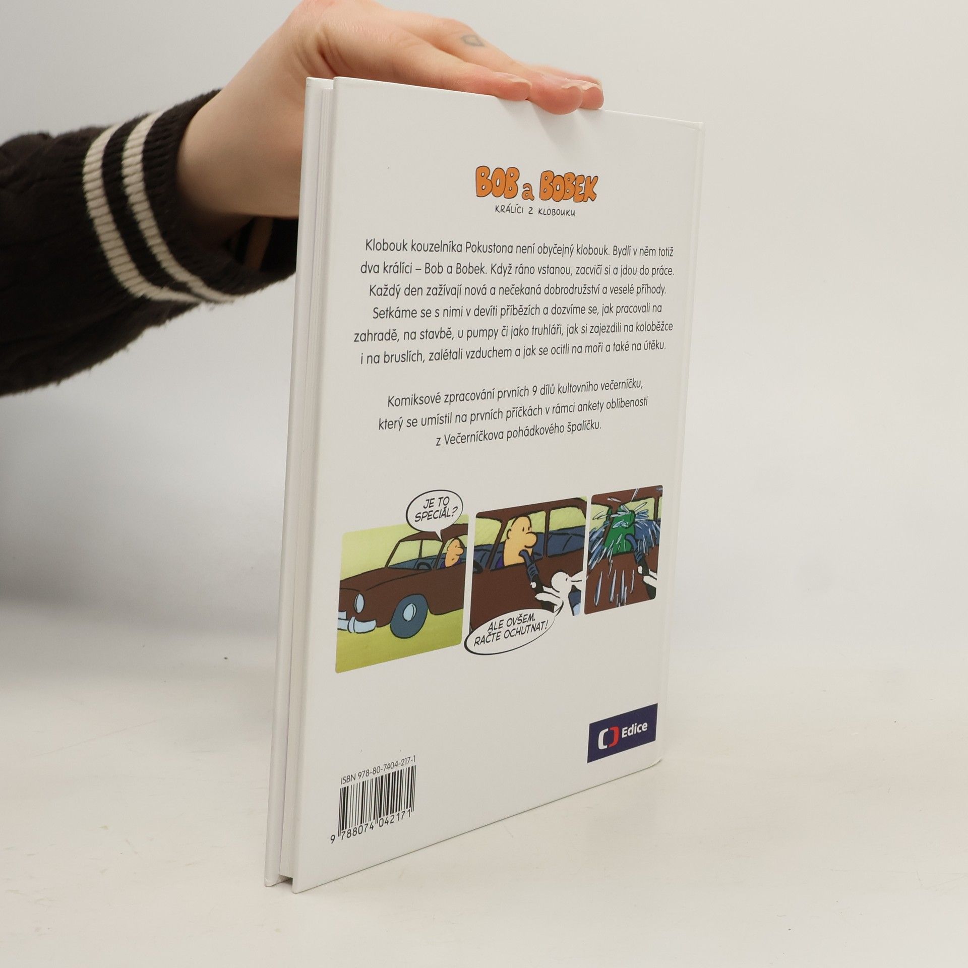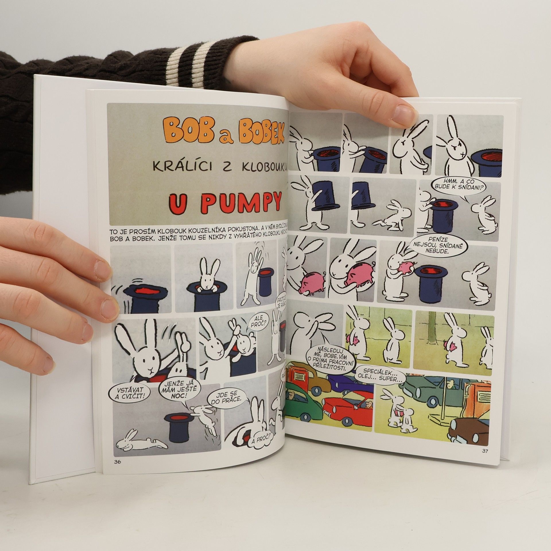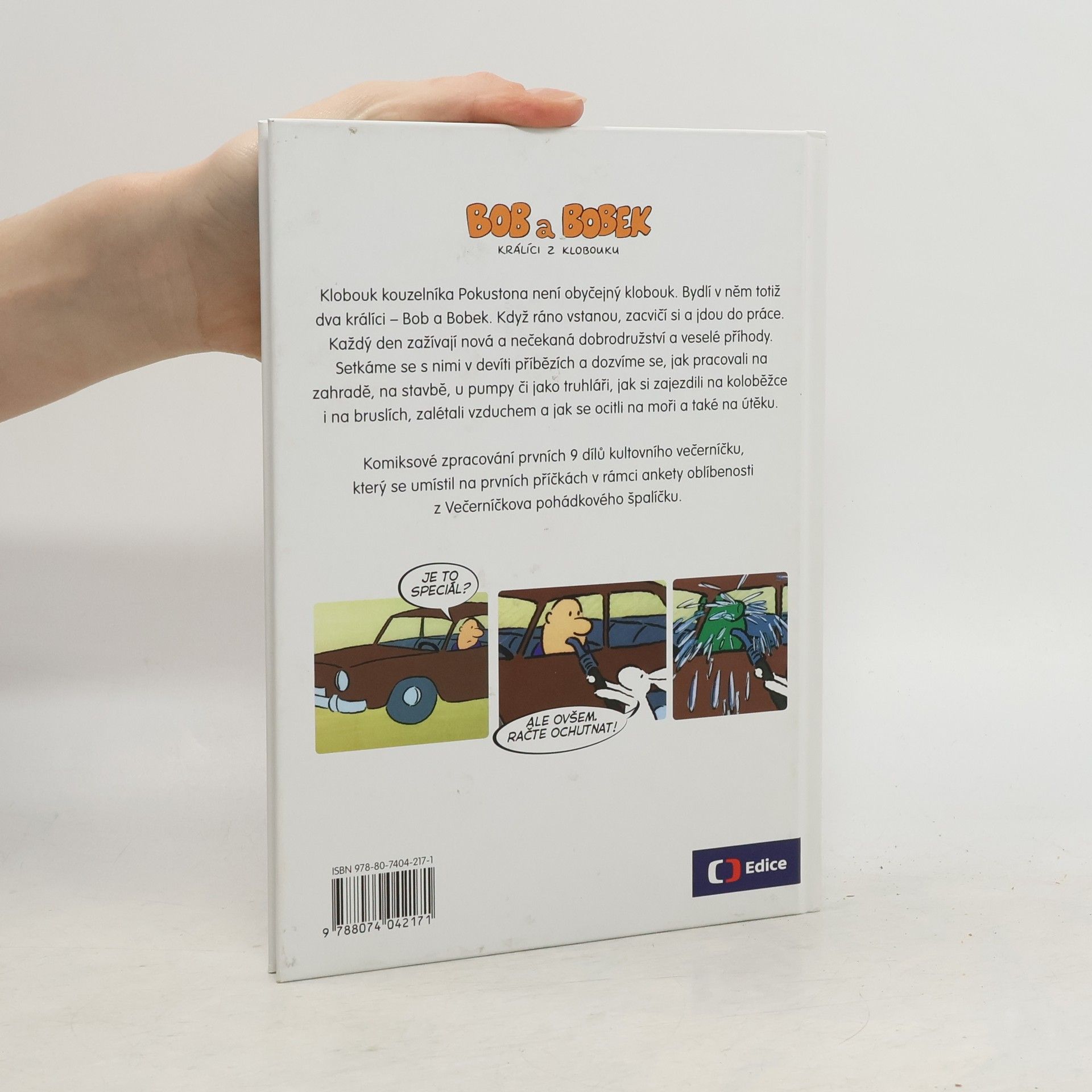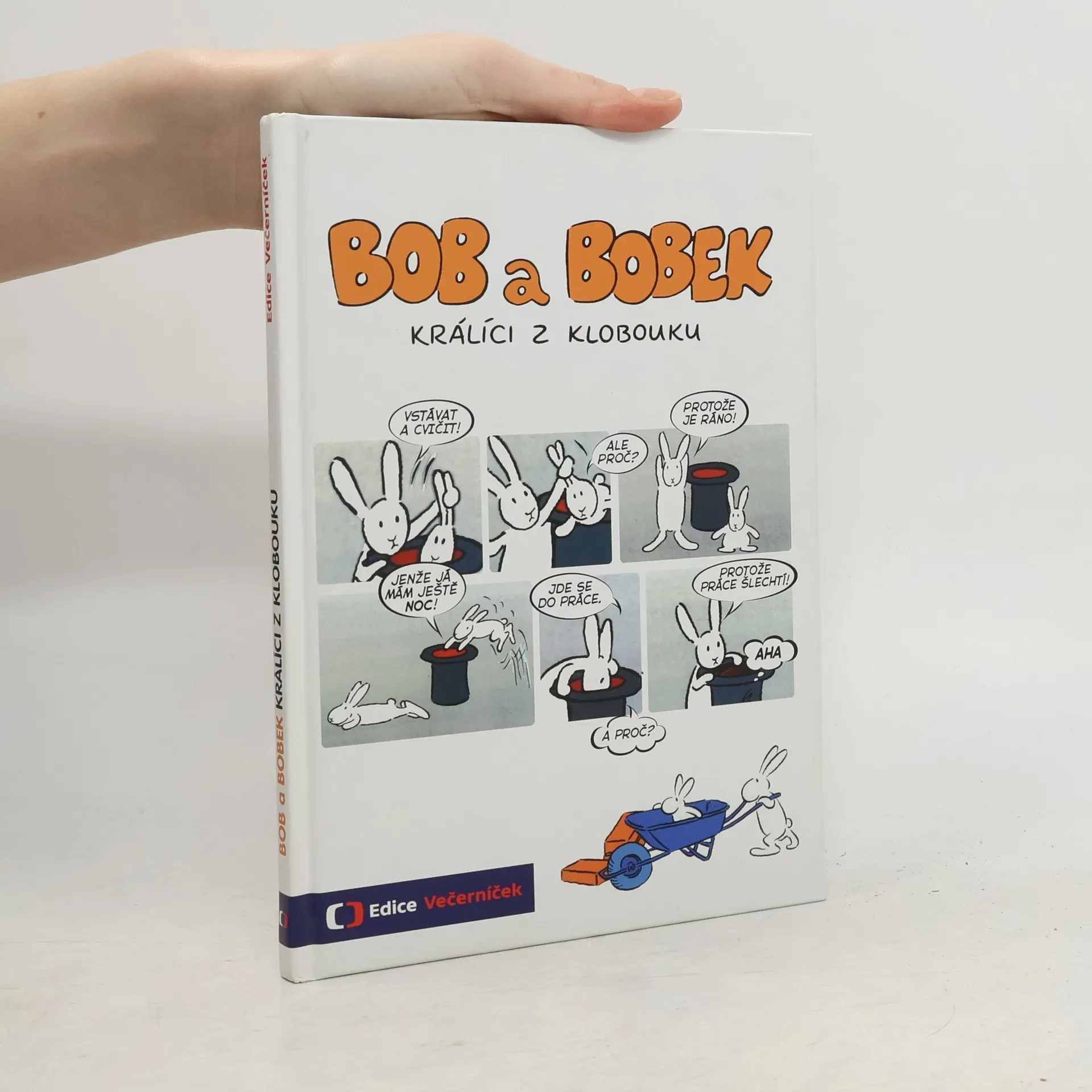 Klobouk kouzelníka Pokustona není obyčejný klobouk. Bydlí v něm totiž dva králíci – Bob a Bobek. Když ráno vstanou, zacvičí si a jdou do práce. Každý den zažívají nová a nečekaná dobrodružství a veselé příhody. Setkáme se s nimi v devíti příbězích a dozvíme se, jak pracovali na zahradě, na stavbě, u pumpy či jako truhláři, jak si zajezdili na koloběžce i na bruslích, jak si zalétali vzduchem a jak se ocitli na moři a také na útěku. Komiksové zpracování prvních 9 dílů kultovního večerníčku, který se umístil na prvních příčkách v rámci ankety oblíbenosti z Večerníčkova pohádkového špalíčku.