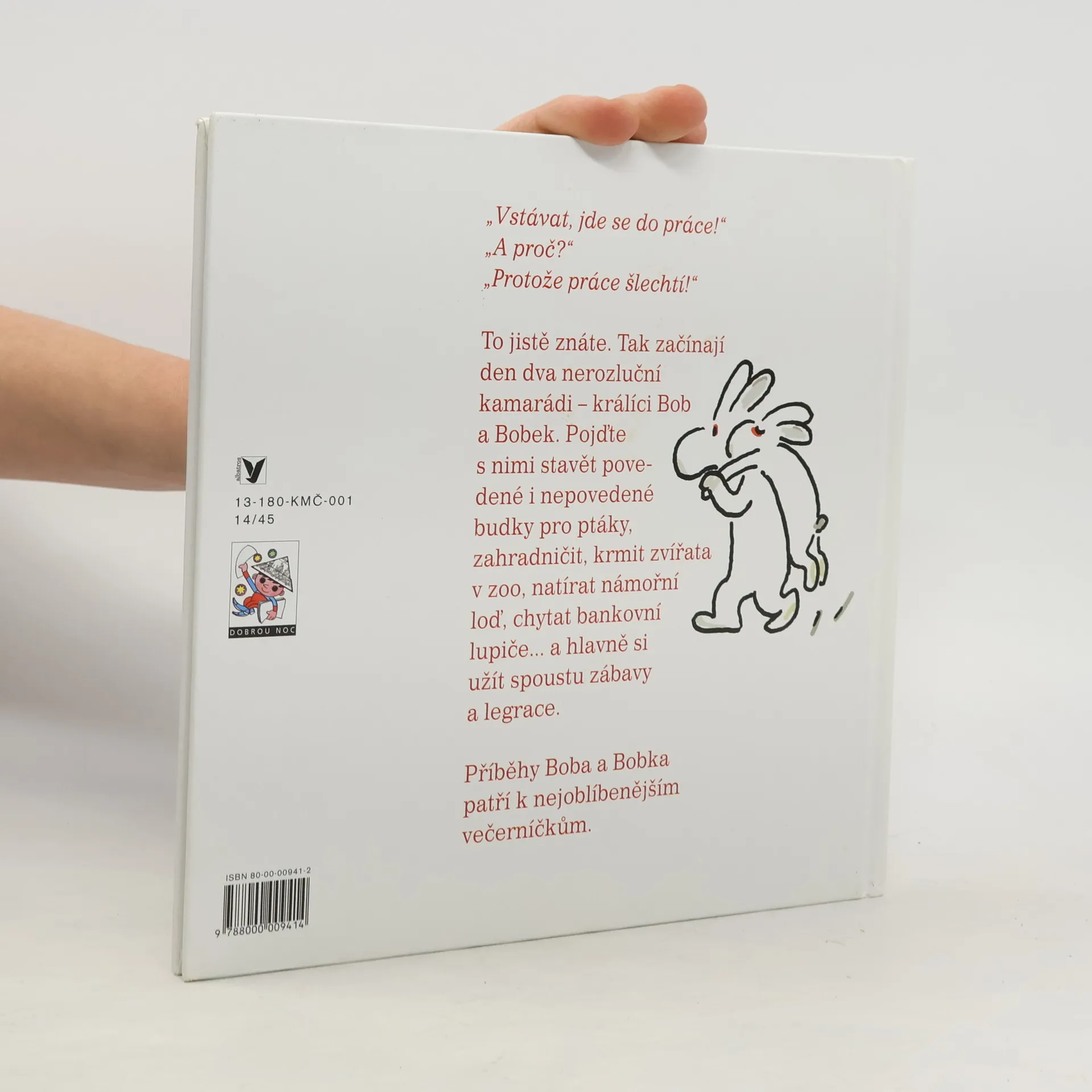 Byli jednou Bob a Bobek a nikdo jim neřekl jinak než králíci z klobouku. Nebyli to obyčejní králíci. Patřili kouzelníkovi Pokustonovi, který je při představení pokaždé vyčaroval z klobouku. Jednou se však stalo, že svůj kouzelnický klobouk zapomněl kdesi na louce, smaringotkou kdovíkam odjela na milé králíky si ani nevzpomněl. A králíci? Ti se živili, jak svedli. Zahradničili, truhlařili, natírali, zametali, a šlo jim to, no, jedna báseň. Jako sehrané partě.