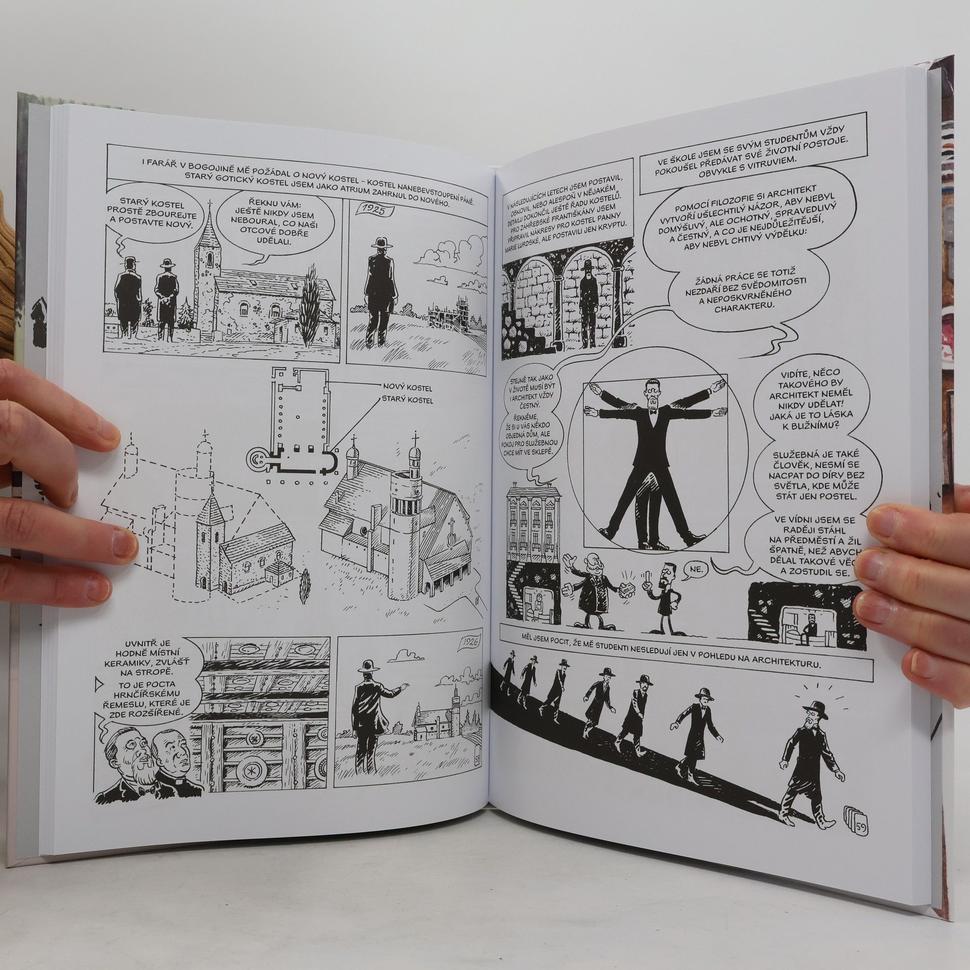 Kdo byl architekt, který stavěl pyramidy v Lublani či minojské býky v Praze? A sloupy obdivoval tak vehementně, že je stavěl, i když nic nenesly? V komiksu vypráví Jože Plečnik o sobě, vzpomíná na svá velká díla a na lidi i místa, jež měl příležitost na své dlouhé životní cestě mezi Lublaní, Vídní a Prahou poznat. Plečnik v komiksu příběh o svém životě vypráví sám. Jeho vyprávění je formováno jako pohled na to, kdo byl a kdy tvořil, občas přemýšlí o možných alternativách ke svým rozhodnutím. Příběh zahrnuje jeho současníky, především podle kritéria vlivu, který na něj a jeho dílo měli. Podobně jako u Plečnikových děl, kde byl kvůli rozsahu proveden logický výběr, bylo nezbytné takto postupovat i při zahrnutí jeho studentů a spolupracovníků, kteří jeho projektům přidávali své znalosti a svoji autorskou pečeť.