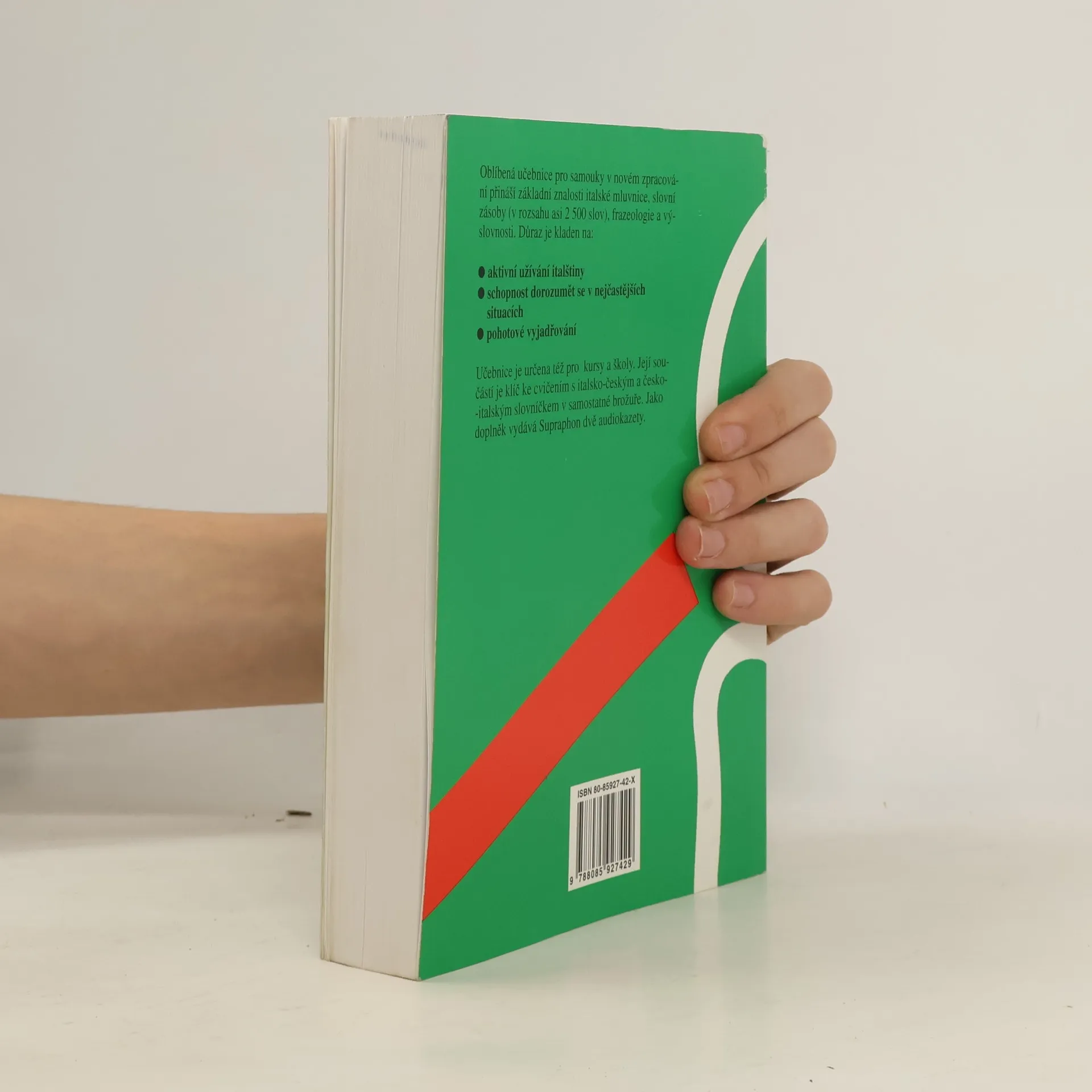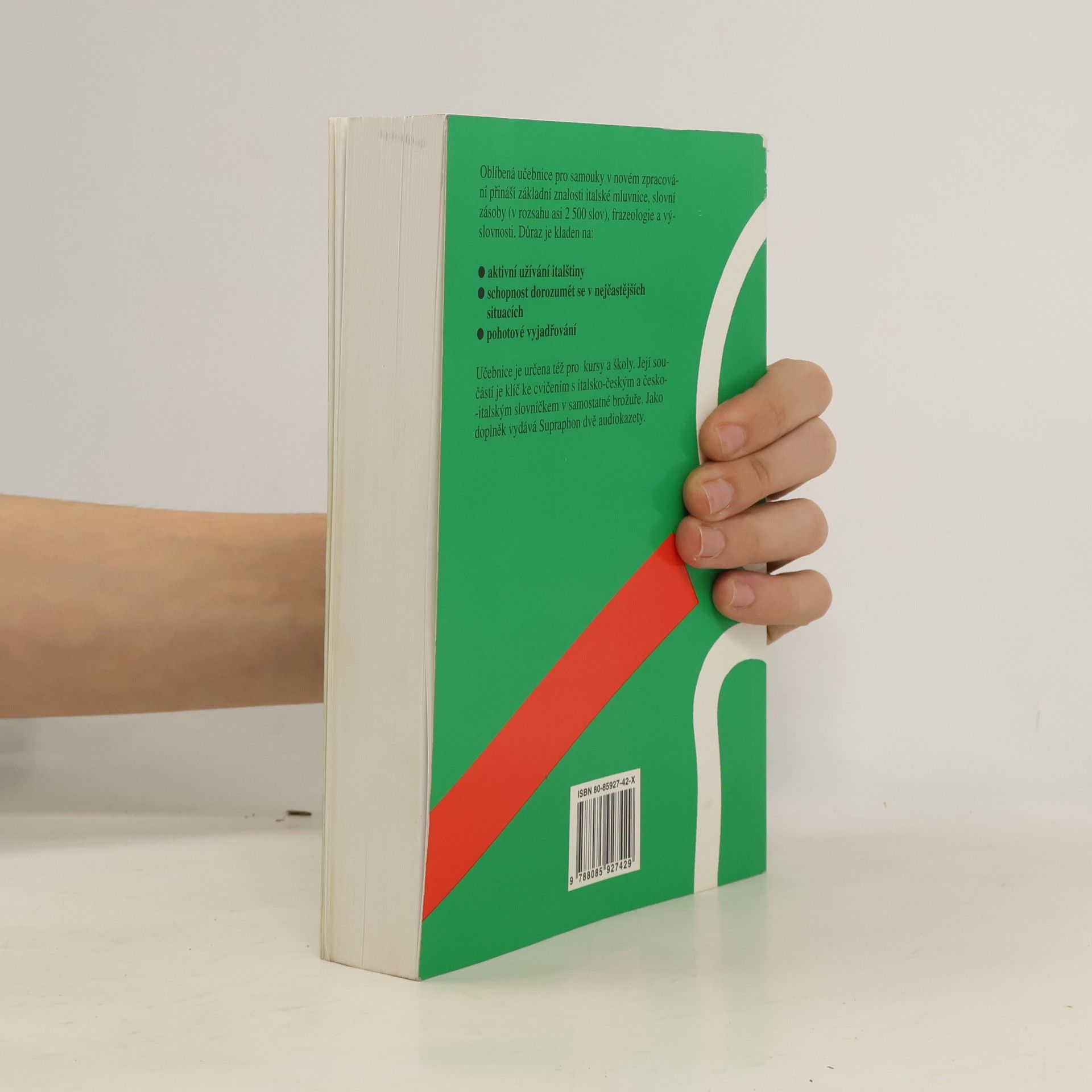 Oblíbená učebnice pro samouky v novém zpracování přináší základní znalosti italské mluvnice, slovní zásoby (v rozsahu asi 2500 slov ), frazeologie a výslovnosti. Důraz je kladen na: aktivní užívání italštiny schopnost dorozumět se v nejčastějších situacích pohotové vyjádřováníUčebnice je určena též pro školy a kursy. Její součásti je brožura obsahující klíč ke cvičením s italsko-českým a česko-italským slovníčkem. Jako samostatný doplněk vydává Supraphon audionahrávku.
