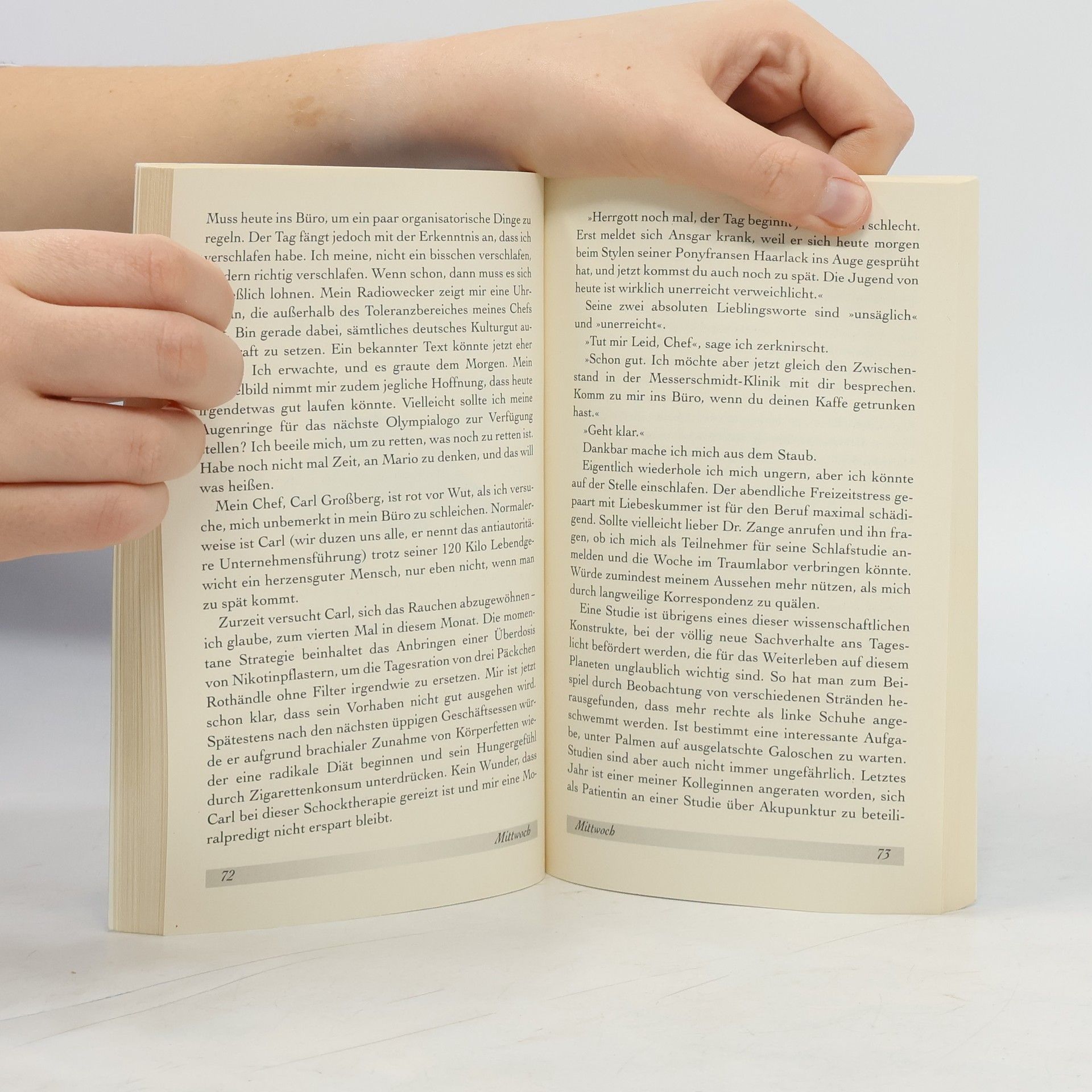 Sie kommen aus zwei verschiedenen Welten. Er baut Dächer, sie berät Krankenhäuser. Er ist attraktiv, sie intelligent. Er verschwindet aus heiterem Himmel. Sie will, dass er zurückkehrt und wartet sieben Tage lang. So lange darf sie heulen, kämpfen, zu viel trinken und die Hausarbeit verweigern. Nach Ablauf dieser Frist - das hat sich Wiebke geschworen - wird sie ihn vergessen. Doch dank ihrer Freundin Lola, Udo Jürgens, einem promovierten Goldfisch und einem Chirurgen namens Ingo kommt schließlich doch alles ganz anders als geplant ...§