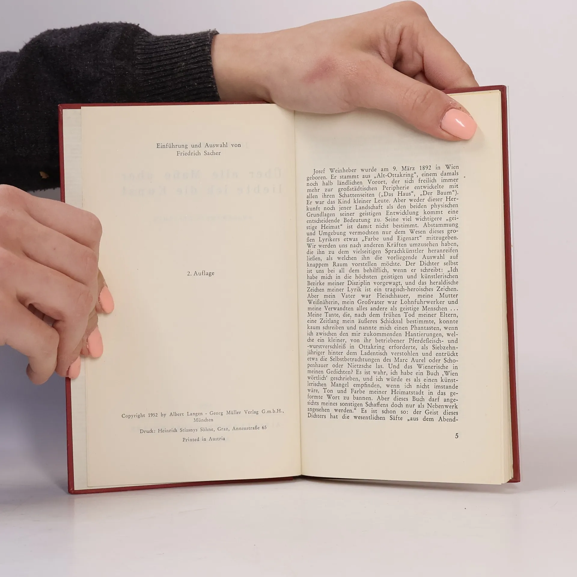 Über alle Maße aber liebte ich die Kunst, Josef Weinheber