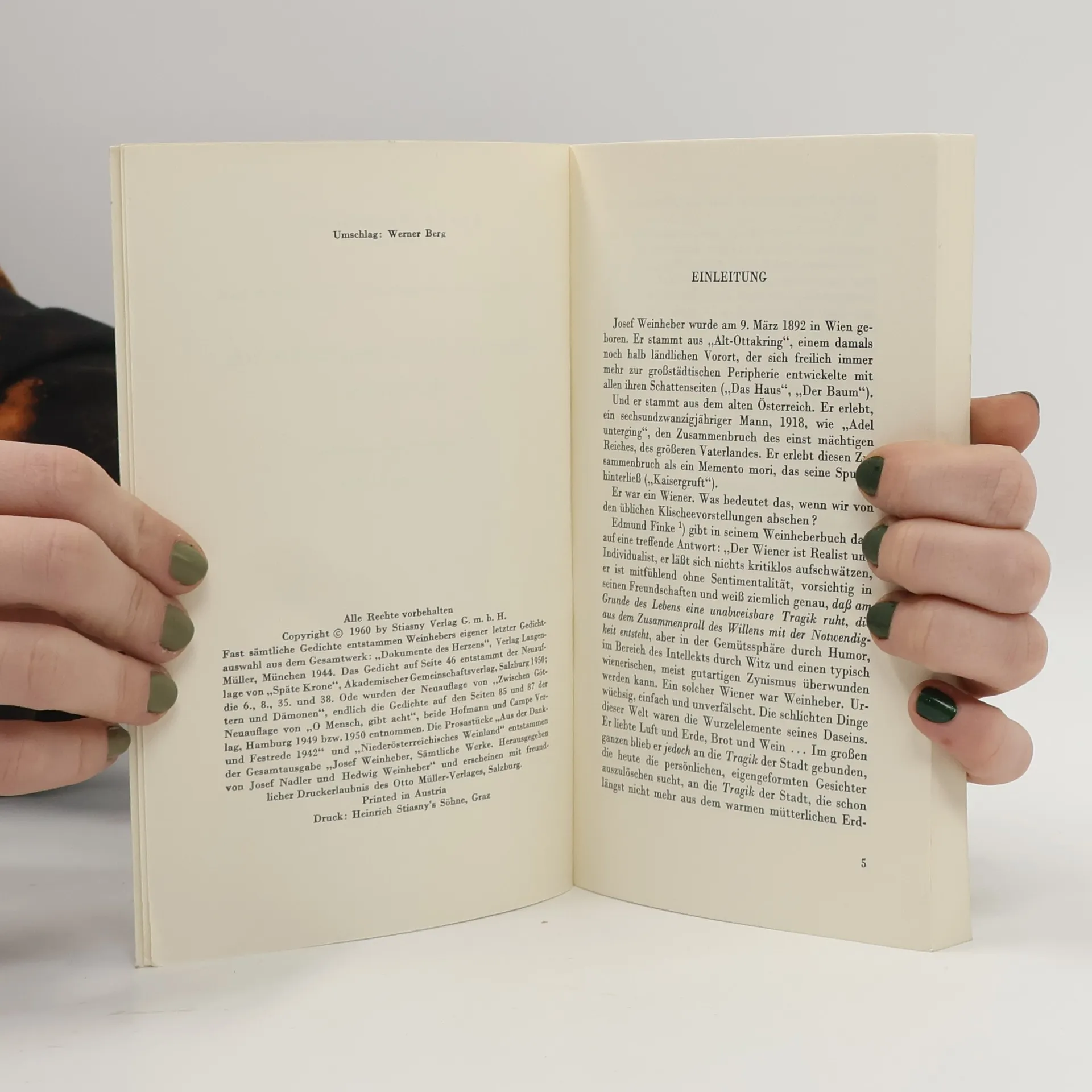 Über alle Maße aber liebte ich die Kunst, Josef Weinheber