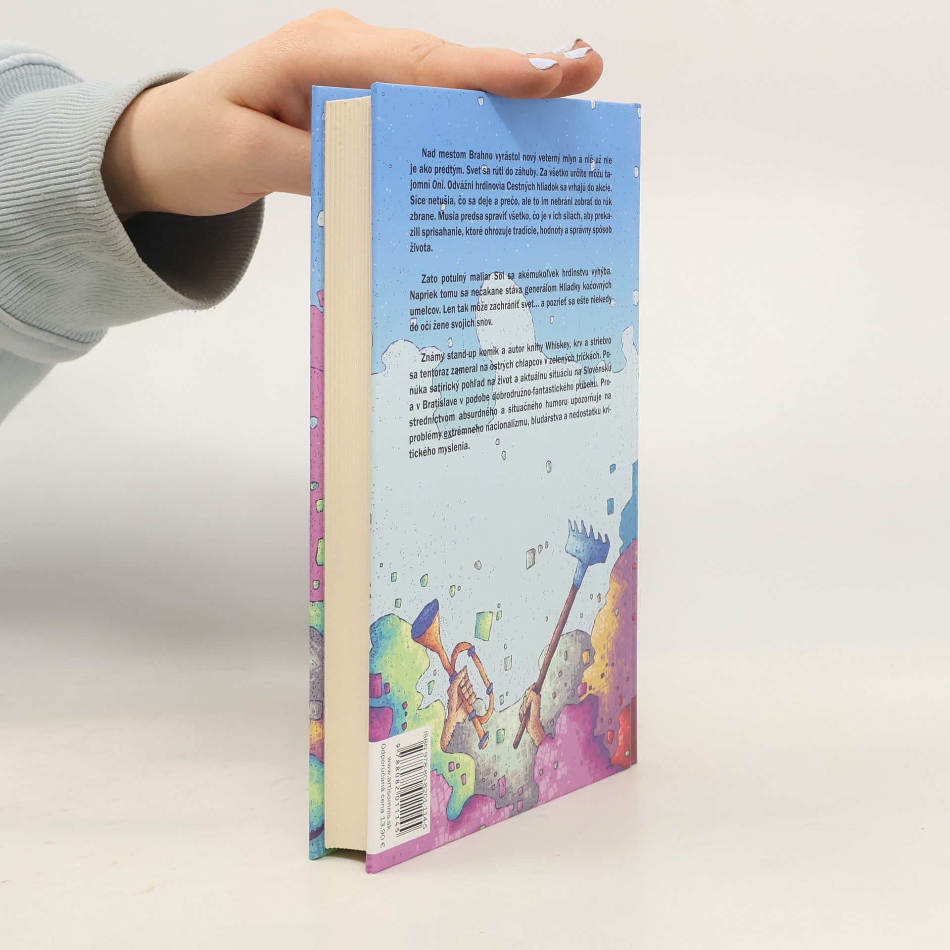Nad mestom Brahno vyrástol nový veterný mlyn a nič už nie je ako predtým. Svet sa rúti do záhuby. Za všetko určite môžu tajomní Oni. Odvážni hrdinovia Cestných hliadok sa vrhajú do akcie. Síce netušia, čo sa deje a prečo, ale to im nebráni zobrať do rúk zbrane. Musia predsa spraviť všetko, čo je v ich silách, aby prekazili sprisahanie, ktorá ohrozuje tradície, hodnoty a správny spôsob života. Zato potulný maliar Sol sa akémukoľvek hrdinstvu vyhýba. Napriek tomu sa nečakane stáva generálom Hliadky kočovných umelcov. Len tak môže zachrániť svet... a pozrieť sa ešte niekedy do očí žene svojich snov. Známy stand-up komik a autor knihy Whiskey, krv a striebro sa tentoraz zameral na ostrých chlapcov v zelených tričkách. Ponúka satirický pohľad na život na Slovensku, Bratislave a našu aktuálnu situáciu v podobe dobrodružno-fantastického príbehu. Prostredníctvom absurdného a situačného humoru upozorňuje na problémy extrémneho nacionalizmu, bludárstva a nedostatku kritického myslenia.