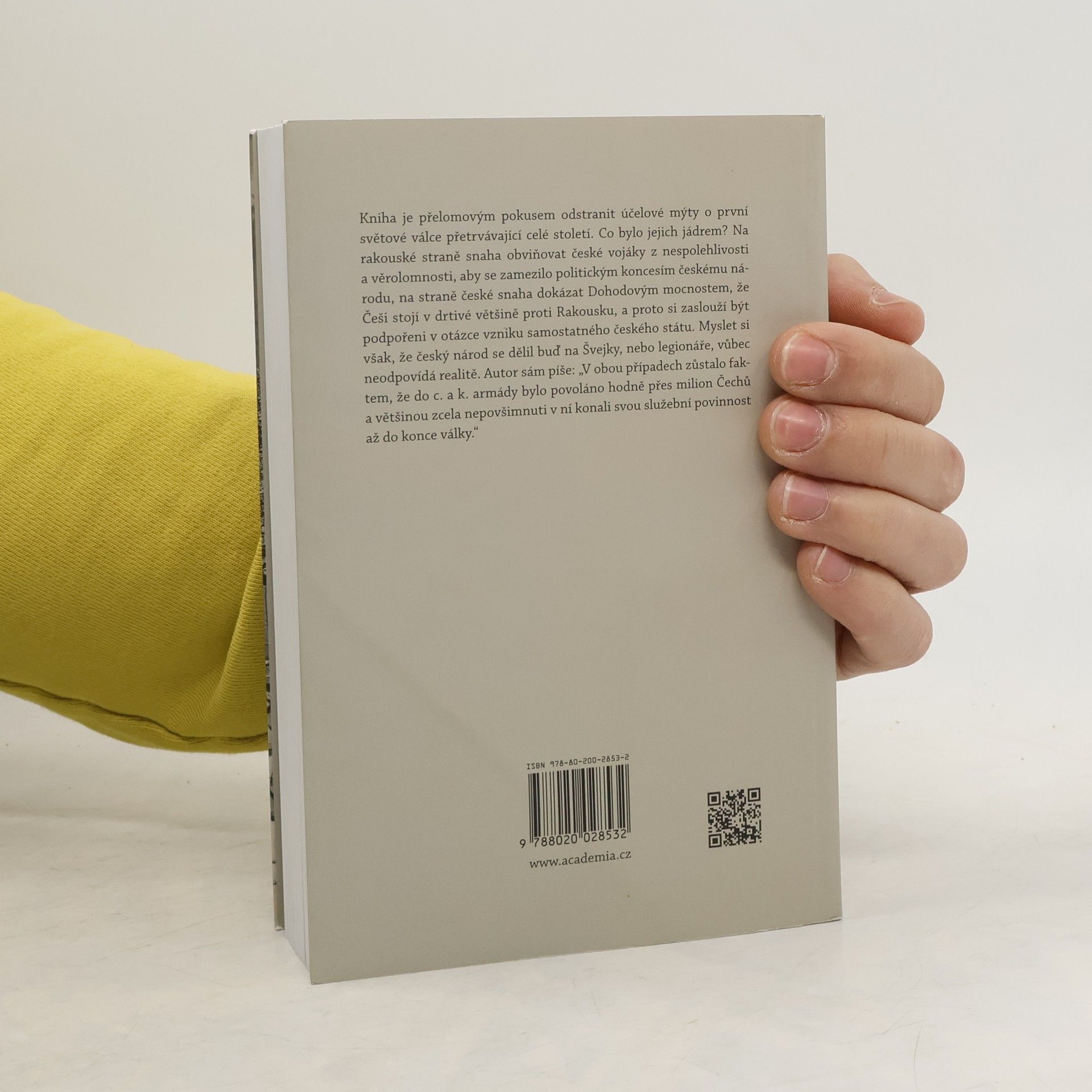 Kniha je přelomovým pokusem odstranit účelové mýty o první světové válce přetrvávající celé století. Co bylo jejich jádrem? Na rakouské straně snaha obviňovat české vojáky z nespolehlivosti a věrolomnosti, aby se zamezilo politickým koncesím českému národu, na straně české snaha dokázat Dohodovým mocnostem, že Češi stojí v drtivé většině proti Rakousku, a proto si zaslouží být podpořeni v otázce vzniku samostatného českého státu. Myslet si však, že český národ se dělil buď na Švejky, nebo legionáře, vůbec neodpovídá realitě. Autor sám píše: „V obou případech zůstalo faktem, že do c. a k. armády bylo povoláno hodně přes milion Čechů a většinou zcela nepovšimnuti v ní konali svou služební povinnost až do konce války.“