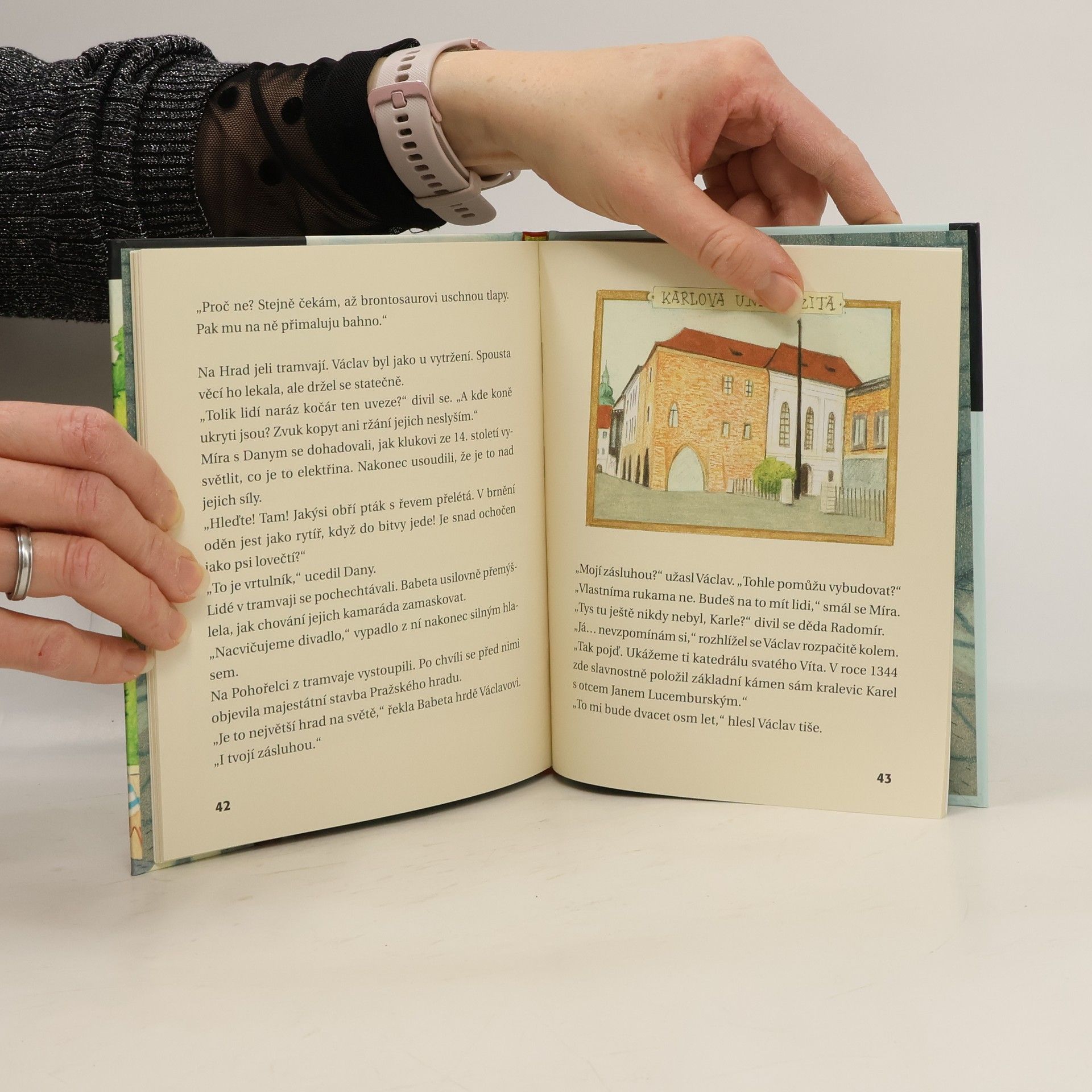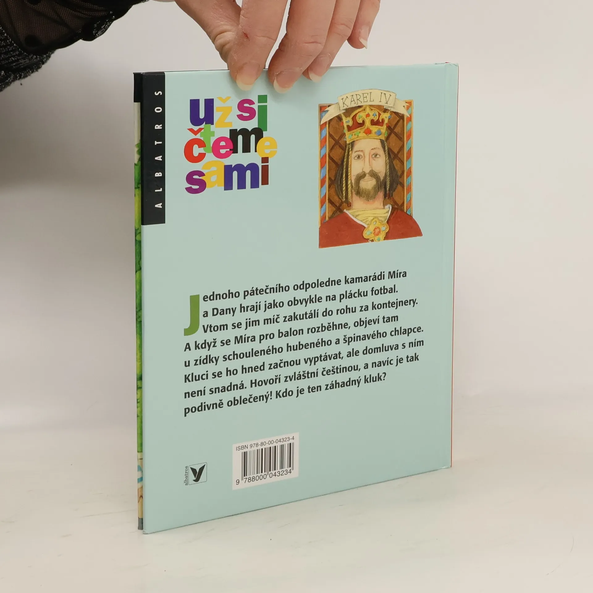 Kamarádi Míra a Dany potkají záhadného kluka. Kdo to je? No přece malý Karel IV. Jednoho pátečního odpoledne kamarádi Míra a Dany hrají jako obvykle na plácku fotbal. Vtom se jim míč zakutálí do rohu za kontejnery. A když se Míra pro balon rozběhne, objeví tam u zídky schouleného hubeného a špinavého chlapce. Kluci se ho hned začnou vyptávat, ale domluva s ním není snadná. Hovoří zvláštní češtinou, a navíc je tak podivně oblečený! Kdo je ten záhadný kluk? Ke knize je přiložený pracovní sešit - bavte se a luštěte!