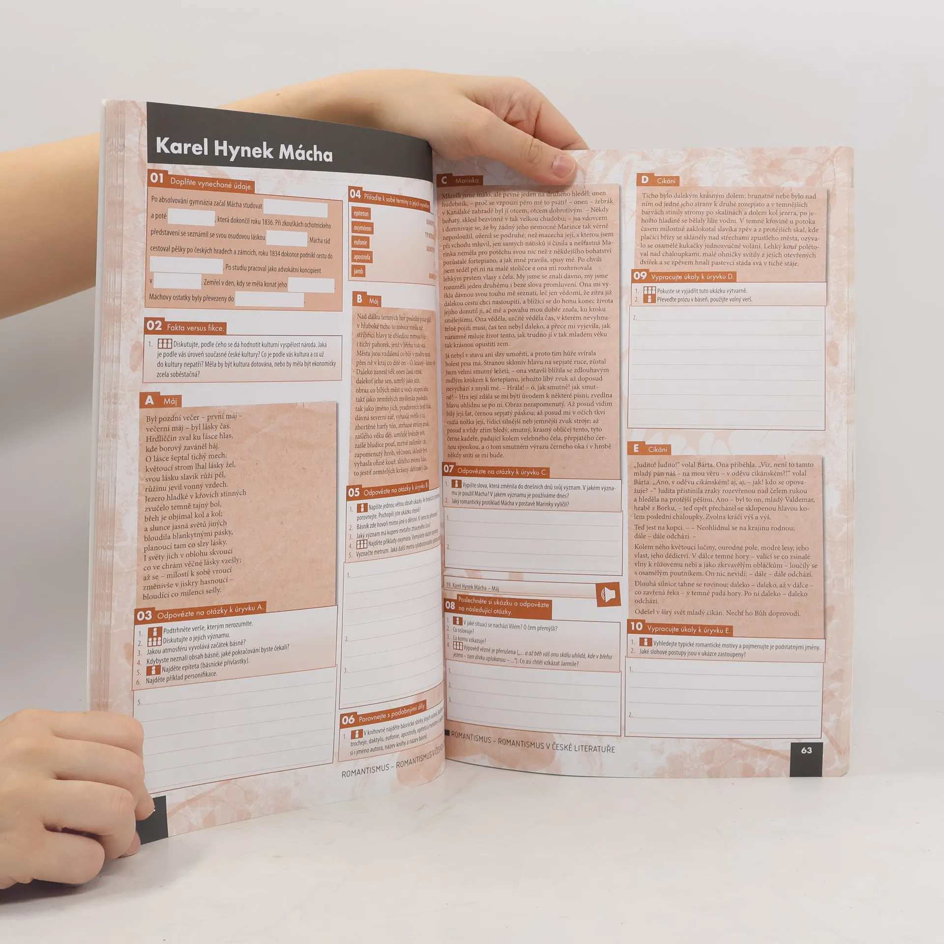 Pracovní sešit tvoří kompaktní celek s učebnicí, neboť prostřednictvím práce s literárním textem prohlubuje znalosti o vývoji literární tvorby v daném období. Kopíruje strukturu učebnice, což usnadňuje jeho použití.