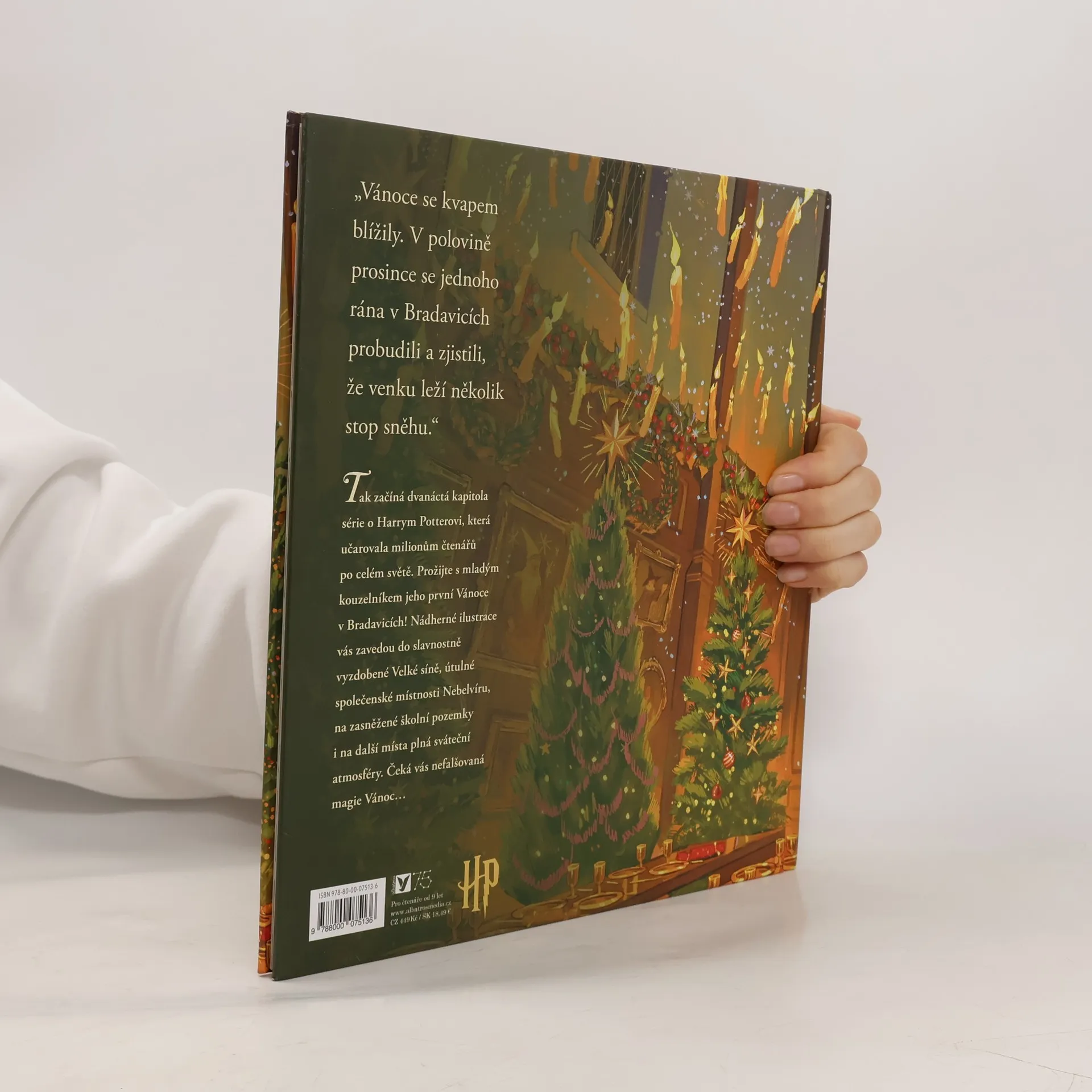 Vánoční příběh s celostránkovými ilustracemi pro malé i velké fanoušky Harryho Pottera. "Vánoce se kvapem blížily. V polovině prosince se jednoho rána v Bradavicích probudili a zjistili, že venku leží několik stop sněhu." Tak začíná dvanáctá kapitola série o Harrym Potterovi. Prožijte s mladým kouzelníkem jeho první Vánoce v Bradavicích. Nakladatelská anotace. Kráceno.
