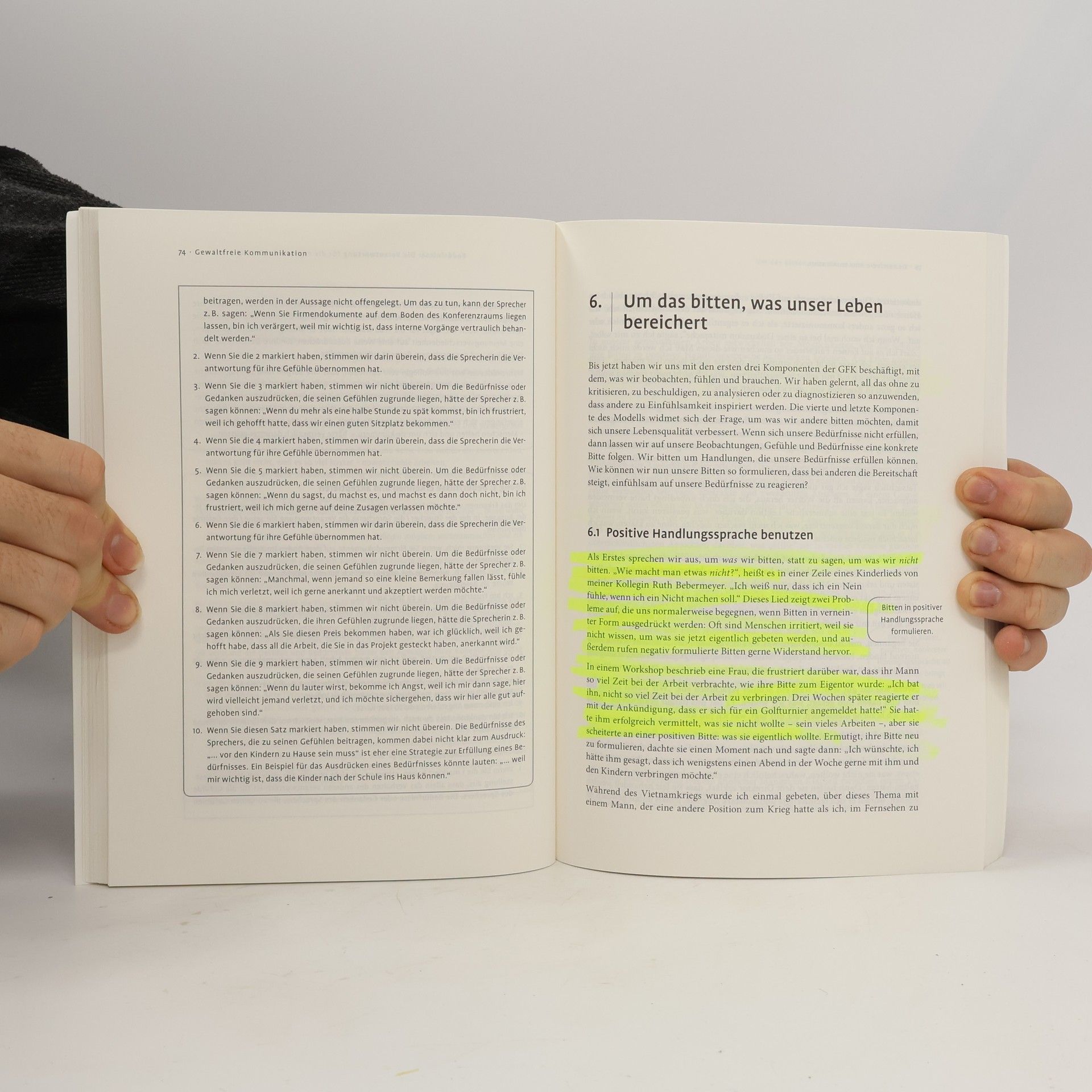 Das Grundlagenwerk – der Bestseller in Gewaltfreier Kommunikation Ohne dass wir es vielleicht beabsichtigen, haben unsere Worte und unsere Art zu sprechen Verletzung und Leid zur Folge – bei anderen und auch bei uns selbst. Die Gewaltfreie Kommunikation (GFK) hilft uns, bewusster zuzuhören und unserem Gegenüber respektvolle Aufmerksamkeit zu schenken. Gleichzeitig lernen wir, uns ehrlich und klar auszudrücken. Als eine Sprache des Lebens können wir die GFK in der Kommunikation mit allen Menschen, egal welchen Alters, unabhängig von ihrem kulturellen oder religiösen Hintergrund in den unterschiedlichsten Situationen anwenden. Mit Geschichten, Erlebnissen und beispielhaften Gesprächssituationen macht Marshall Rosenberg in seinem Buch deutlich, wie sich mithilfe der GFK auch komplexe Kommunikationsprobleme lösen lassen. Für die Neuauflage dieses Bestsellers wurde der Text umfassend überarbeitet und um ein neues Kapitel zum Thema „Konfliktklärung und Mediation“ erweitert. „Das Buch Gewaltfreie Kommunikation kann die Welt verändern. Und wichtiger noch, es kann Ihr Leben verändern.“ – Jack Canfield