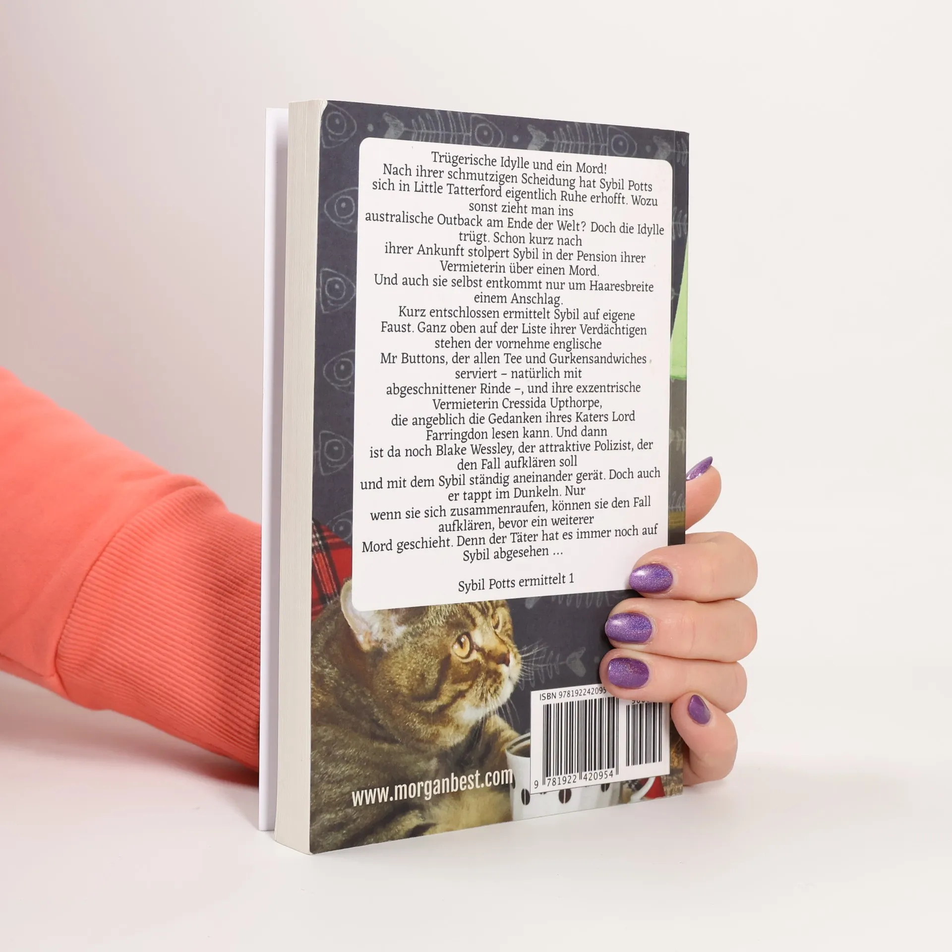 Trügerische Idylle und ein Mord! Nach ihrer schmutzigen Scheidung hat Sybil Pottssich in Little Tatterford eigentlich Ruhe erhofft. Wozu sonst zieht man insaustralische Outback am Ende der Welt? Doch die Idylle trügt. Schon kurz nachihrer Ankunft stolpert Sybil in der Pension ihrer Vermieterin über einen Mord.Und auch sie selbst entkommt nur um Haaresbreite einem Anschlag. Kurz entschlossen ermittelt Sybil auf eigeneFaust. Ganz oben auf der Liste ihrer Verdächtigen stehen der vornehme englischeMr Buttons, der allen Tee und Gurkensandwiches serviert - natürlich mitabgeschnittener Rinde -, und ihre exzentrische Vermieterin Cressida Upthorpe,die angeblich die Gedanken ihres Katers Lord Farringdon lesen kann. Und dannist da noch Blake Wessley, der attraktive Polizist, der den Fall aufklären sollund mit dem Sybil ständig aneinander gerät. Doch auch er tappt im Dunkeln. Nurwenn sie sich zusammenraufen, können sie den Fall aufklären, bevor ein weitererMord geschieht. Denn der Täter hat es immer noch auf Sybil abgesehen ?