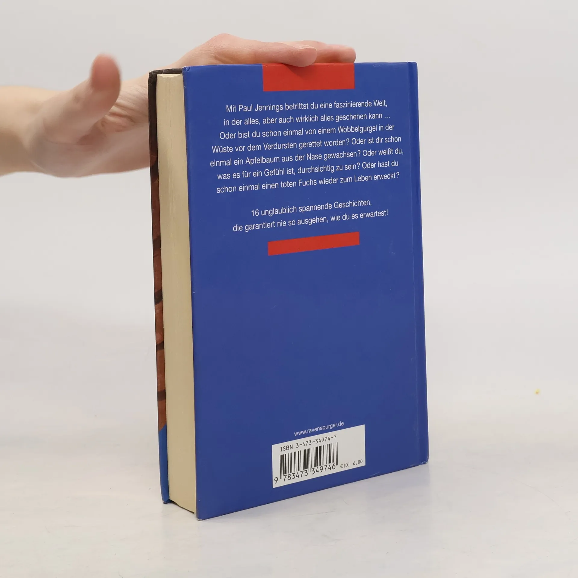 Paul Jennings, der australische Meister des Gruselns, präsentiert 16 spannende und unerwartete Geschichten. Eine davon handelt von Eric, dessen Neid auf einen Klassenkameraden und dessen durchsichtigen Käfer fatale Folgen hat: Seine Hand wird langsam durchsichtig. Atemberaubende und skurrile Erzählungen erwarten den Leser.