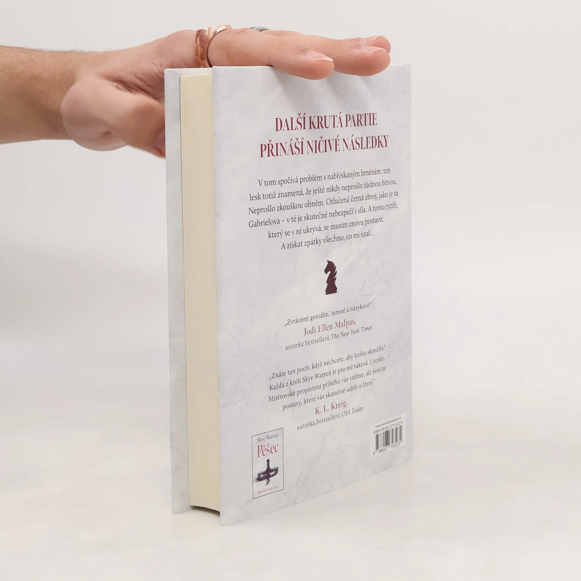 Gabriel Miller mi všechno vzal. Rodinu. Nevinnost. Domov. Jediné, co mi ještě zbylo, je odhodlání získat zpět vše, co mi patří. Myslí si, že mě porazil. Myslí si, že vyhrál. Jenomže mu nedochází, že každý pěšák má šanci stát se královnou. A hra teprve začala. Vyprávění plné zvratů a napětí, pokračování zvláštního vztahu miliardáře a krásky ze zkrachovalé rodiny. Město, jemuž vládnou mocní, kteří si střeží svá tajemství. Touha, pomsta a láska. Takové je pokračování Pěšáka, Jezdec.