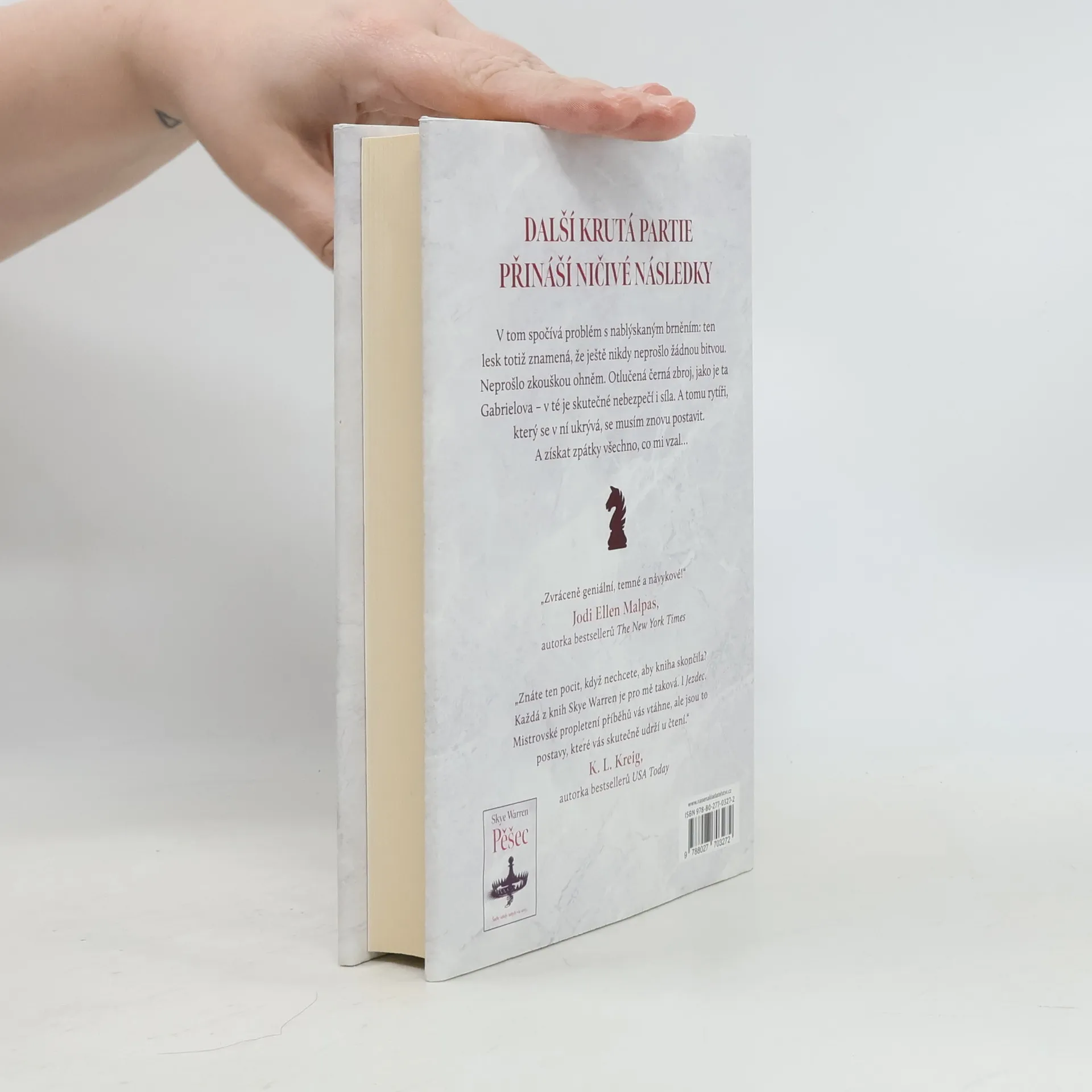 Gabriel Miller mi všechno vzal. Rodinu. Nevinnost. Domov. Jediné, co mi ještě zbylo, je odhodlání získat zpět vše, co mi patří. Myslí si, že mě porazil. Myslí si, že vyhrál. Jenomže mu nedochází, že každý pěšák má šanci stát se královnou. A hra teprve začala. Vyprávění plné zvratů a napětí, pokračování zvláštního vztahu miliardáře a krásky ze zkrachovalé rodiny. Město, jemuž vládnou mocní, kteří si střeží svá tajemství. Touha, pomsta a láska. Takové je pokračování Pěšáka, Jezdec.