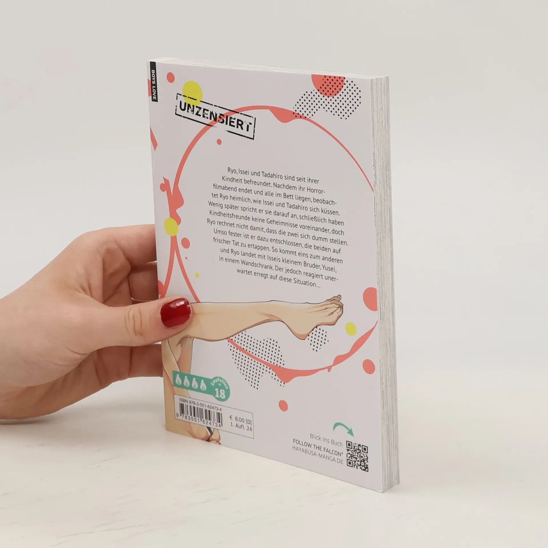 Humorvoller Yaoi-Manga mit Friends-to-Lovers-Dynamik. Ryo beobachtet heimlich, wie seine Freunde Issei und Tadahiro sich küssen, und will sie auf frischer Tat ertappen. Dabei gerät er mit Isseis Bruder Yusei in eine unerwartete Situation. Von Erfolgsautorin Yuo Yodogawa, Serie ist noch nicht abgeschlossen.