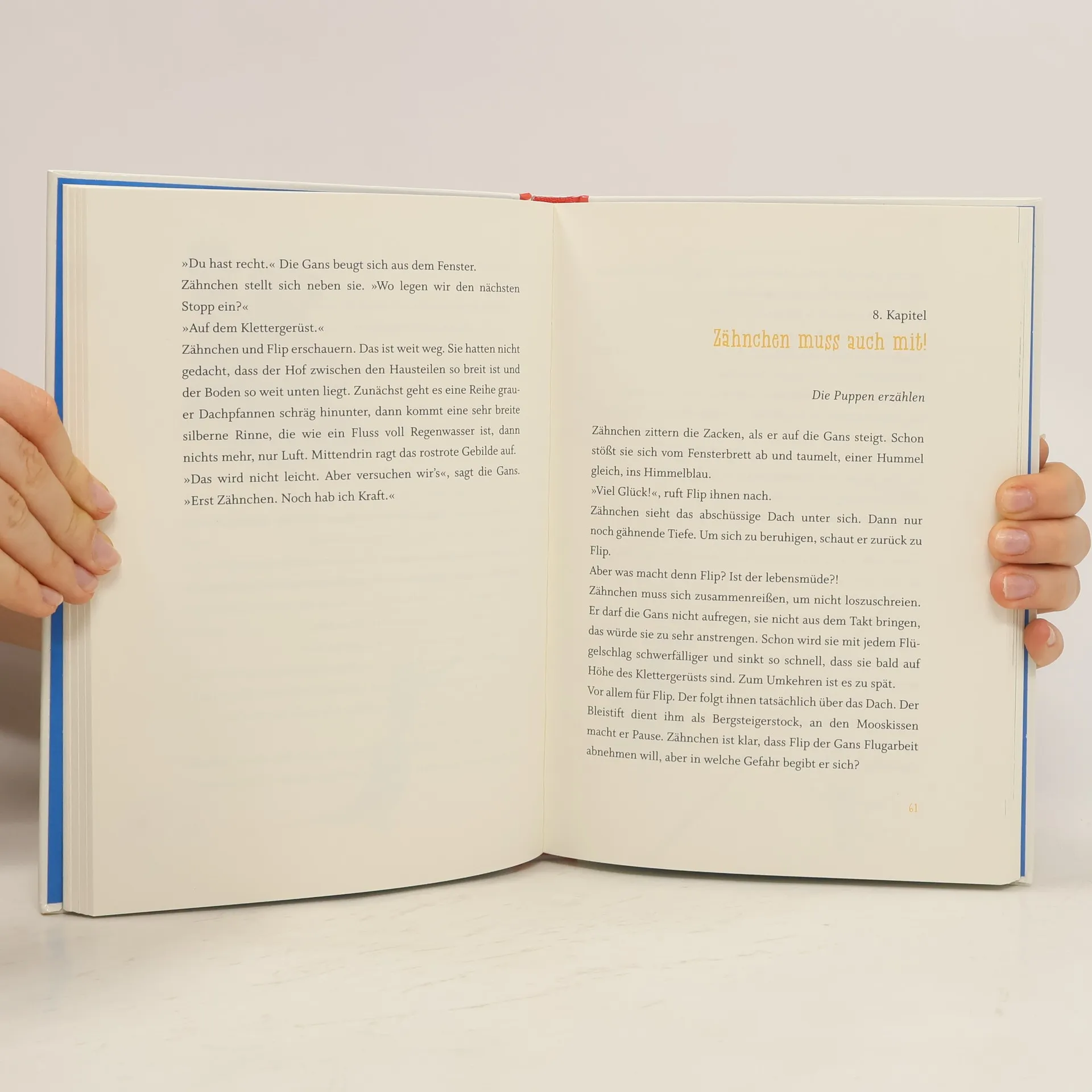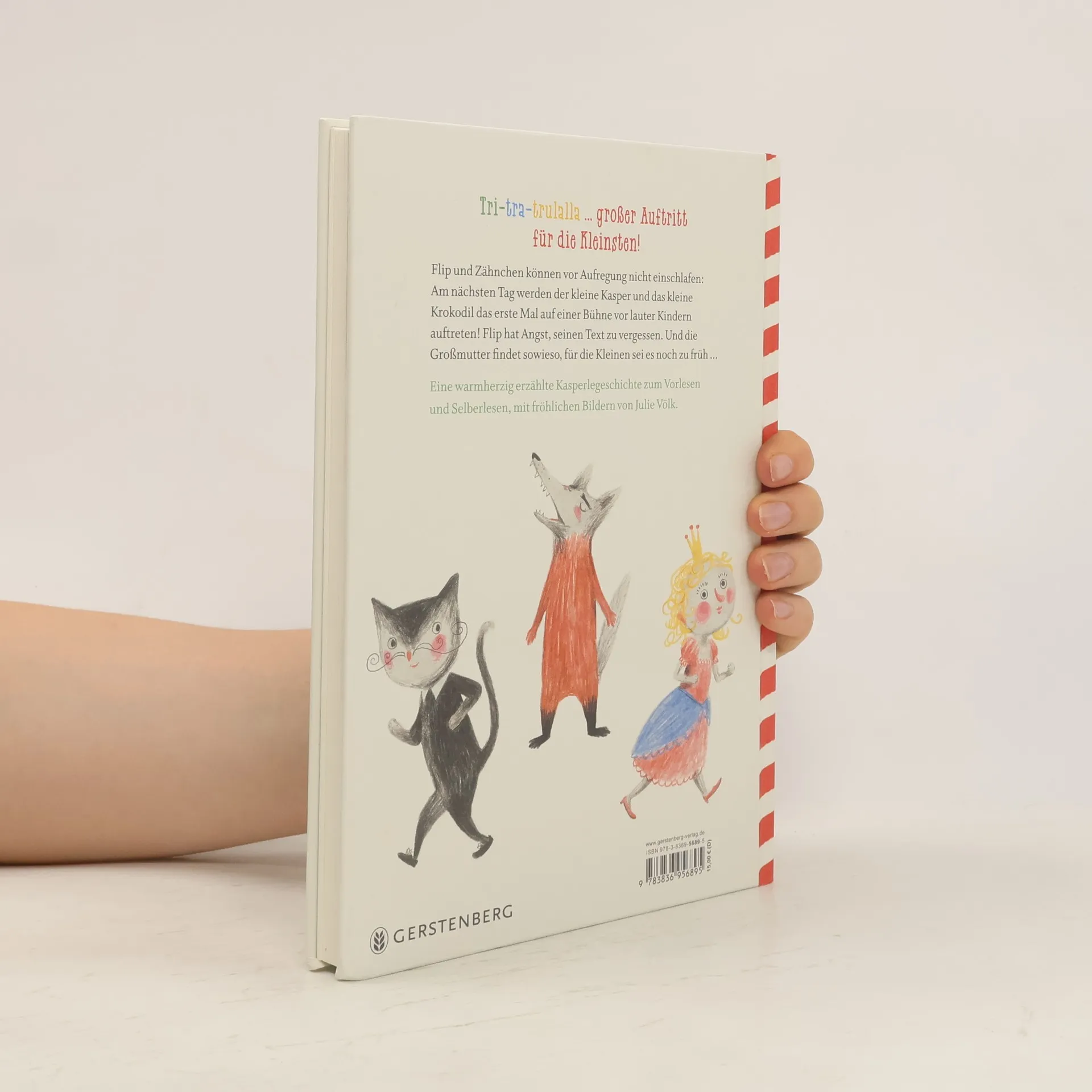 Flip und Zähnchen können vor Aufregung nicht schlafen, da sie am nächsten Tag zum ersten Mal auf einer Bühne auftreten. Trotz der Zweifel der Großmutter und Flips Angst, seinen Text zu vergessen, müssen die Puppen entscheiden, ob sie ohne die Puppenspielerin auftreten. Eine warmherzige und humorvolle Geschichte mit schönen Bildern.