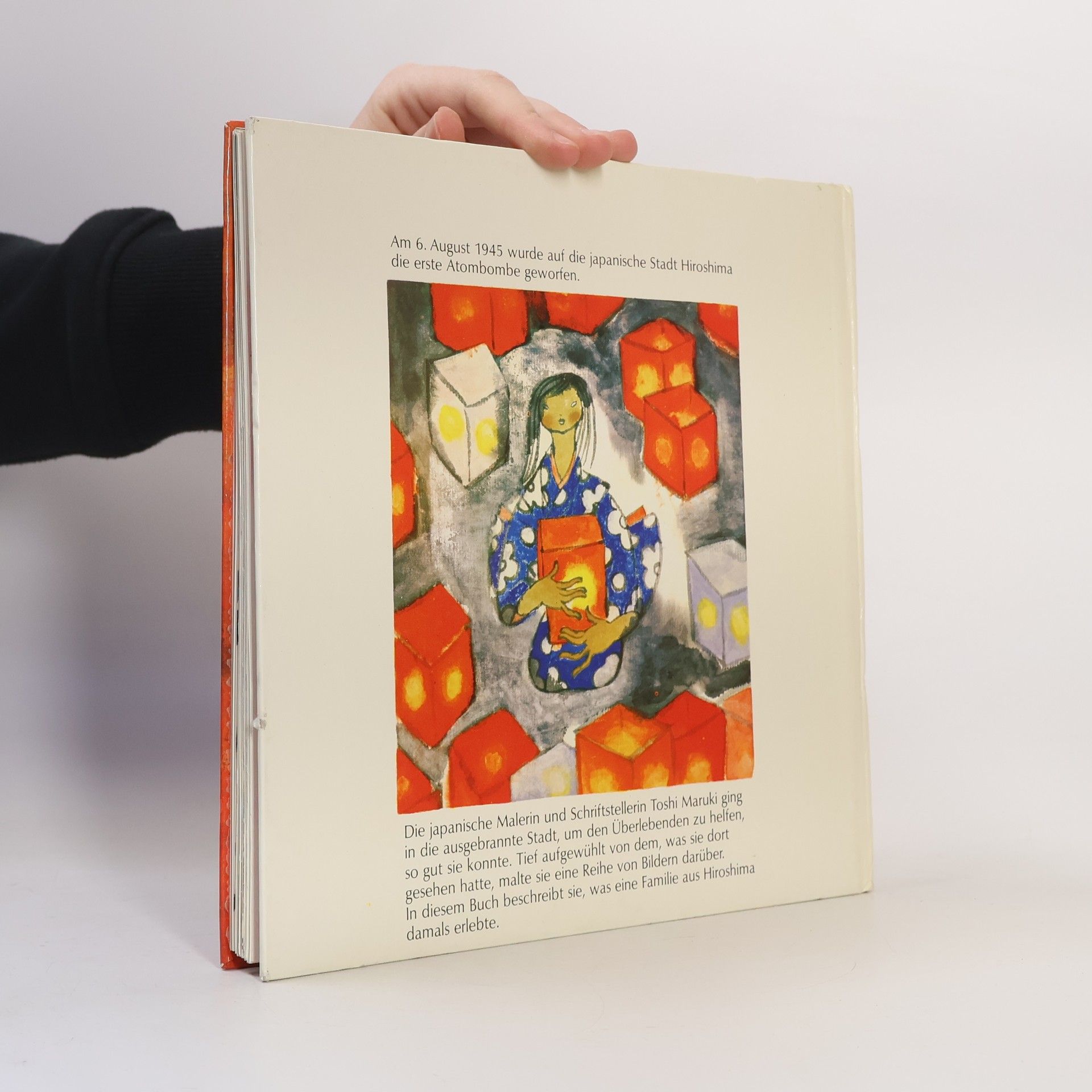 Am 6. August 1945 wurde auf die japanische Stadt Hiroshima die erste Atombombe geworfen. Die japanische Malerin und Schriftstellerin Toshi Maruki ging in die ausgebrannte Stadt, um den Überlebenden zu helfen, so gut sie konnte. Tief aufgewühlt von dem, was sie dort gesehen hatte, malte sie eine Reihe von Bildern darüber. In diesem Buch beschreibt sie, was eine Familie aus Hiroshima damals erlebte.