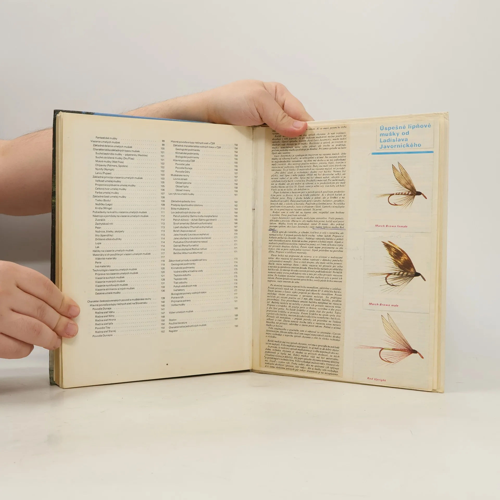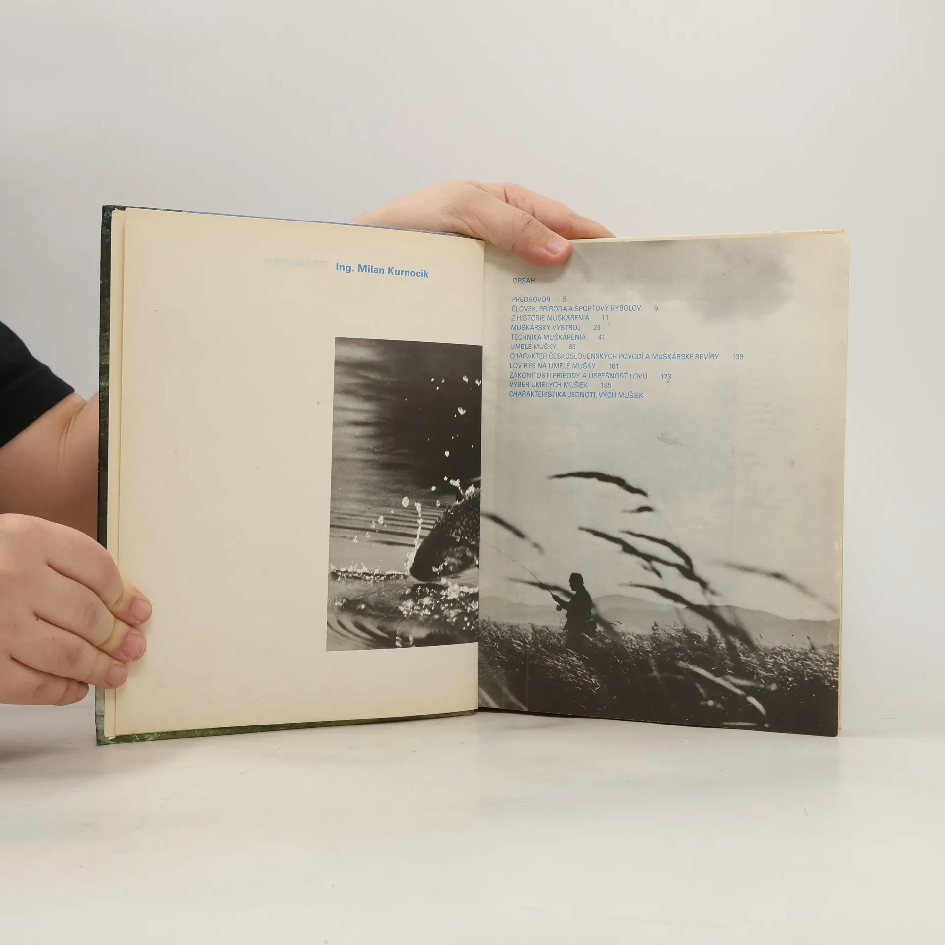 V prvej časti kniha objasňuje vzťah medzi prírodou a človekom a etickú myšlienku vzťahu medzi rybárom a prírodou na základe najnovších ekologických poznatkov, takto opisuje aj muškárske revíry. V druhej časti poskytuje vyčerpávajúci výklad a poznatky o jednotlivých zložkách techniky lovu.Štruktúra tejto časti, jej živý obsah a bohatý výber ilustračného materiálu vystihuje estetickú a športovú stránku muškárenia. Tretia časť Umelé mušky oboznamuje čitateľa so životom hmyzu a možnosťami jeho napodobňovania umelými muškami.