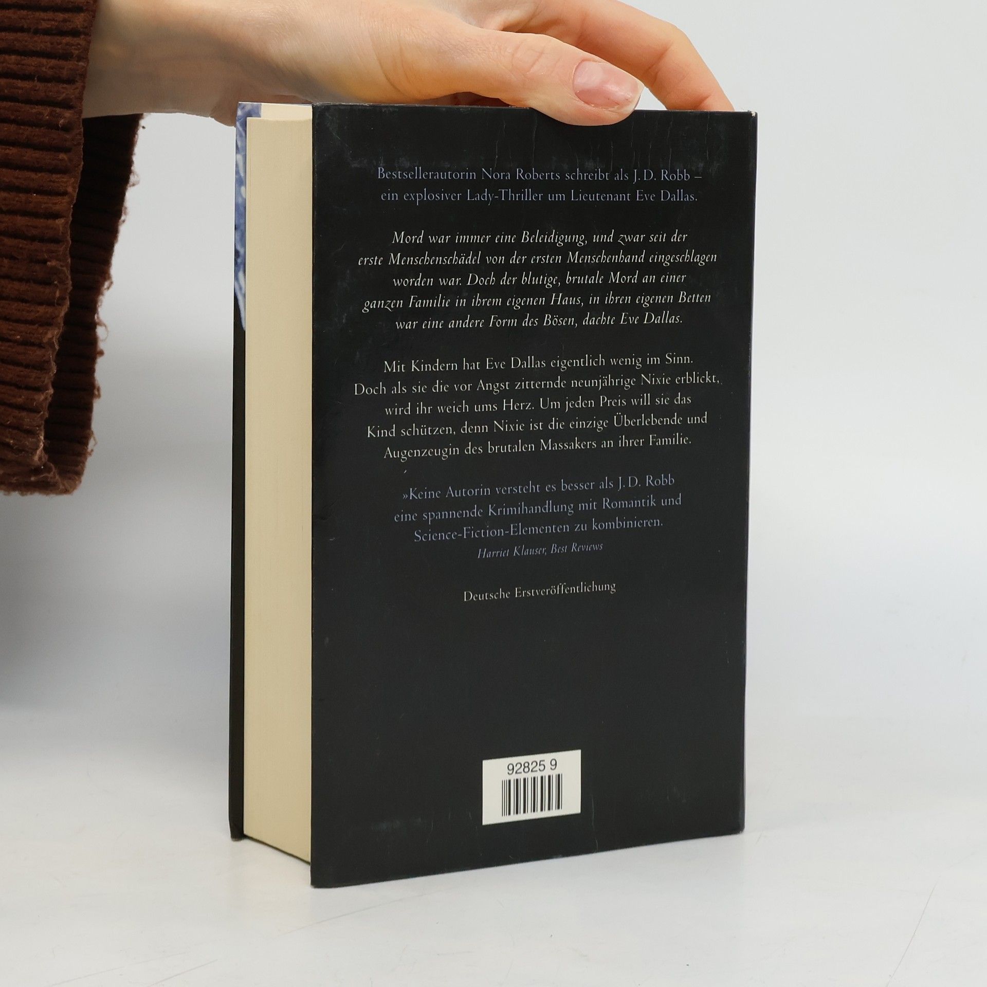 Ein neuer explosiver Lady-Thriller und ein neuer Fall für Eve Dallas, der sie tief in ihre eigene Vergangenheit zurückführt Mitten in der Nacht trifft bei der New Yorker Polizei der ängstliche Notruf eines kleinen Mädchens ein. Eve Dallas macht sich sofort auf den Weg, doch sie kommt zu spät: Die ganze Familie Swisher ist tot, und anscheinend waren hochprofessionelle Killer am Werk, die keine Spuren hinterlassen haben. Nur ein Familienmitglied – die neunjährige Nixie – entging dem Blutbad. Als Eve das zitternde Mädchen erblickt, ist es um sie geschehen. Um jeden Preis will sie das Kind schützen, denn Nixie schwebt als einzige Augenzeugin in höchster Gefahr …