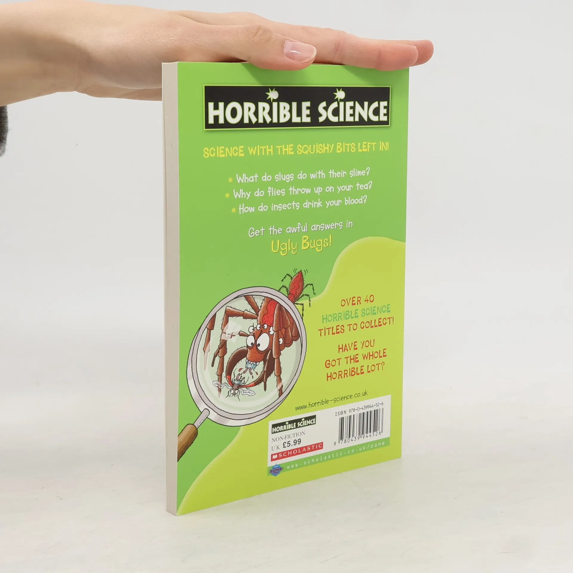 Science with the squishy bits left in! What do slugs do with their slime? Why do flies throw up on your tea? How do insects drink your blood? Get the awful answers in Ugly Bugs!