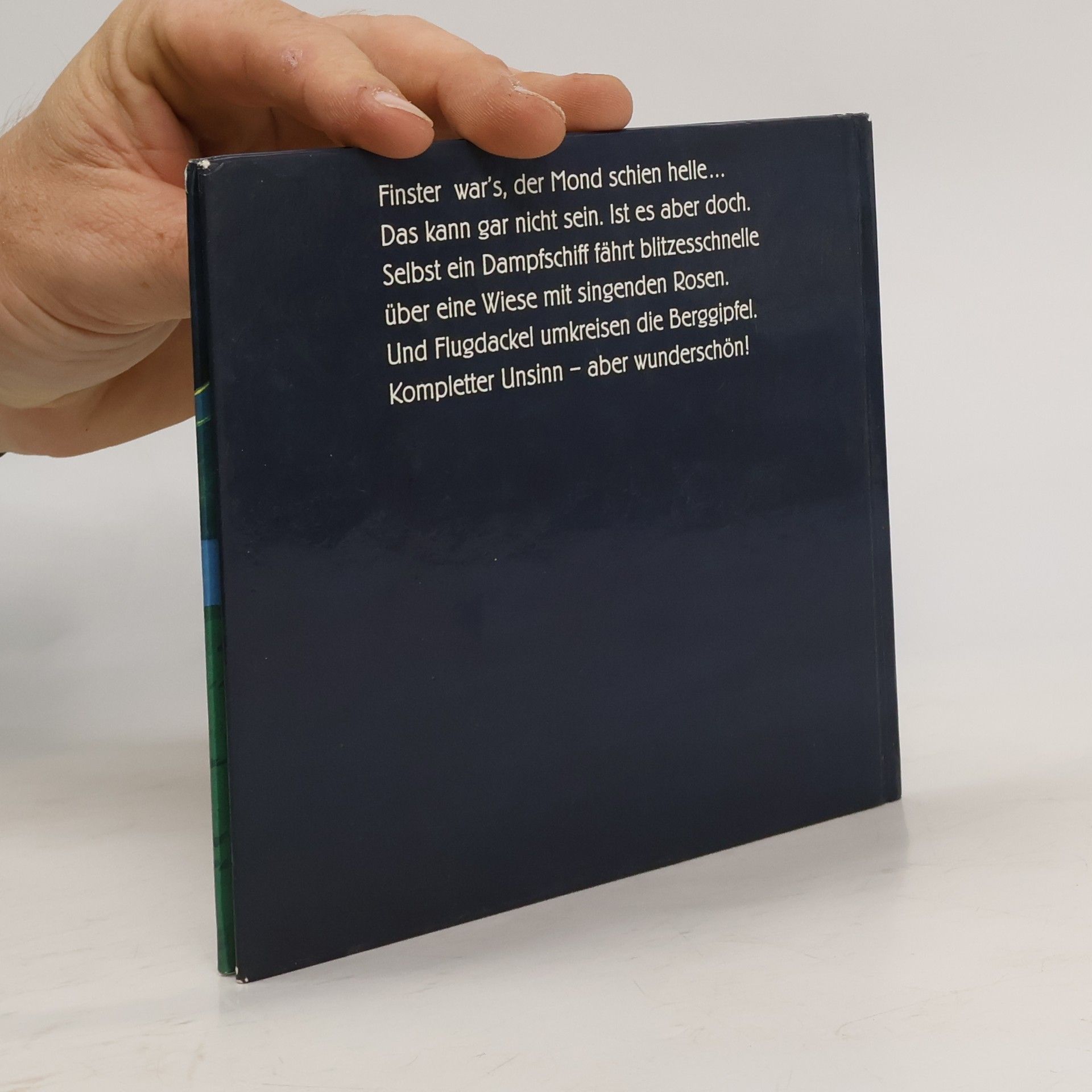 Hans Traxler präsentiert seine eigene Interpretation des bekannten Kinderverses „Finster war's, der Mond schien helle“ und spielt mit der Frage, wer blitzschnell um die Ecke fährt und wohin.