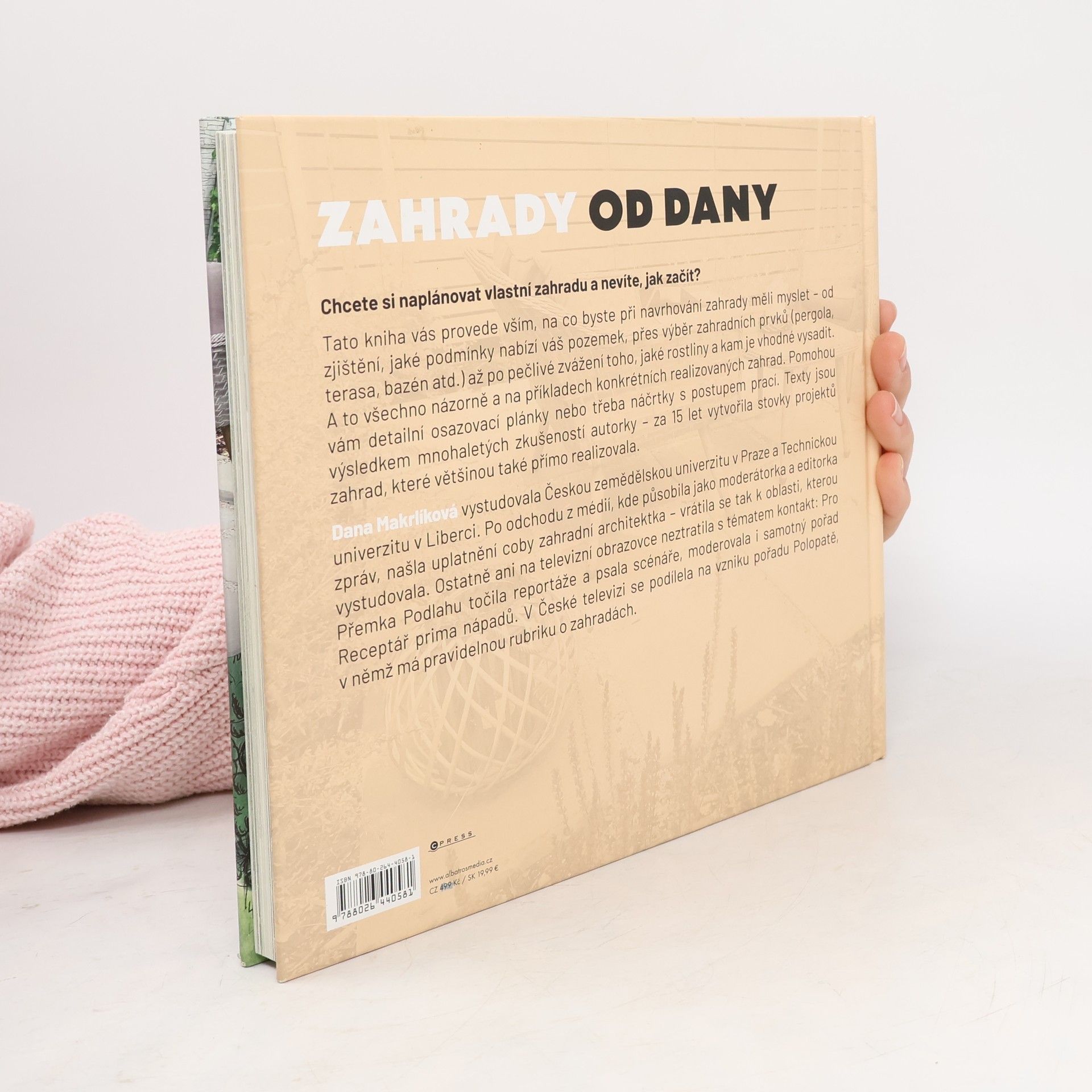 Naplánujte si zahradu krok za krokem. Chcete si naplánovat vlastní zahradu a nevíte, jak začít? Tato kniha vás provede vším, na co byste při navrhování zahrady měli myslet – od zjištění, jaké podmínky nabízí váš pozemek, přes výběr zahradních prvků (pergola, terasa, bazén atd.) až po pečlivé zvážení toho, jaké rostliny a kam je vhodné vysadit. A to všechno názorně a na příkladech konkrétních realizovaných zahrad. Pomohou vám detailní osazovací plánky nebo třeba náčrtky s postupem prací. Texty jsou výsledkem mnohaletých zkušeností autorky – za 15 let vytvořila stovky projektů zahrad, které většinou také přímo realizovala. Dana Makrlíková vystudovala Českou zemědělskou univerzitu v Praze a Technickou univerzitu v Liberci. Po odchodu z médií, kde působila jako moderátorka a editorka zpráv, našla uplatnění coby zahradní architektka – vrátila se tak k oblasti, kterou vystudovala. Ostatně ani na televizní obrazovce neztratila s tématem kontakt: Pro Přemka Podlahu točila reportáže a psala scénáře, moderovala i samotný pořad Receptář prima nápadů. V České televizi se podílela na vzniku pořadu Polopatě, v němž má pravidelnou rubriku o zahradách.