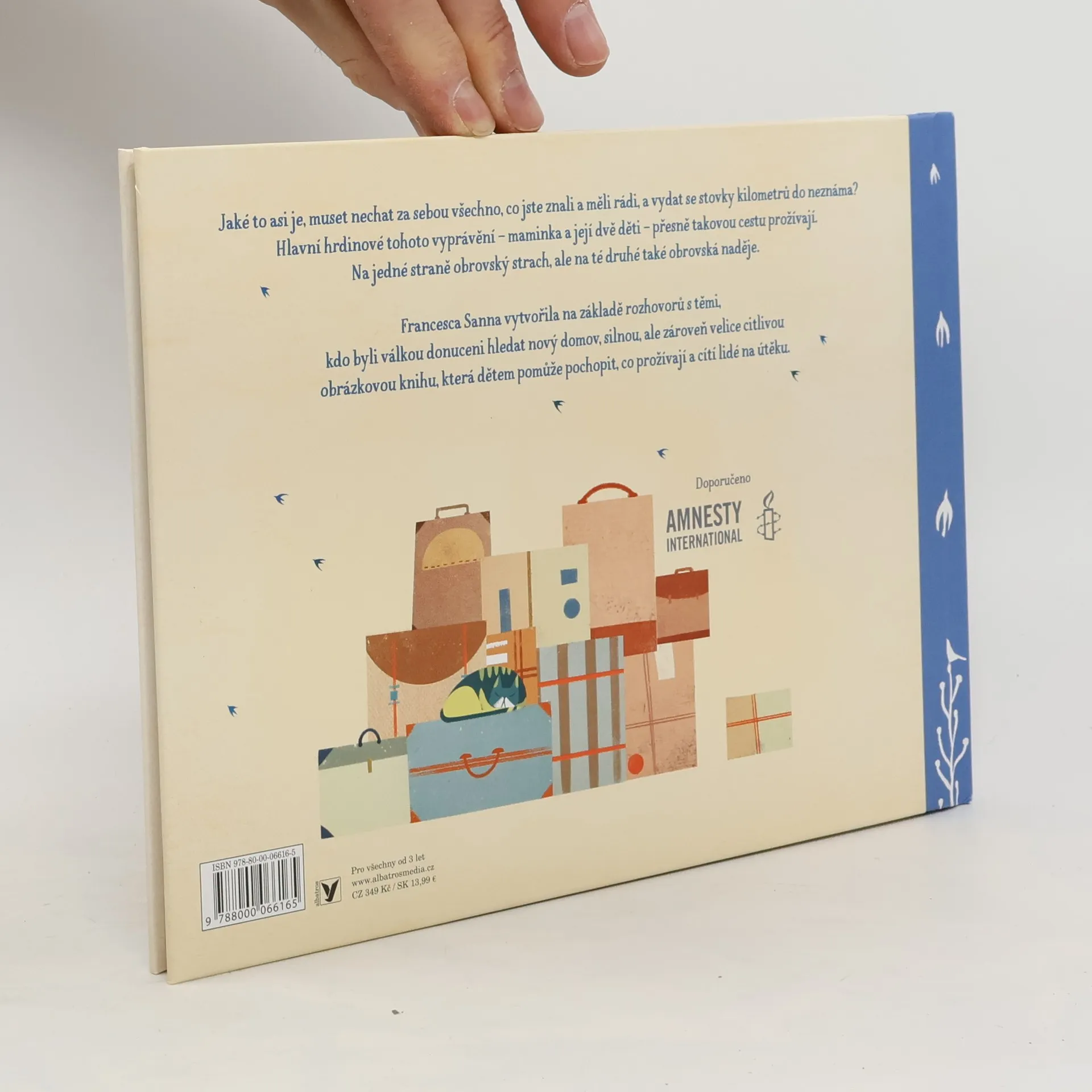 Oceňovaná obrázková kniha o útěku před válkou. Jaké to asi je muset nechat za sebou všechno, co jste znali a měli rádi, a vydat se stovky kilometrů do neznáma? Hlavní hrdinové tohoto vyprávění – maminka a její dvě děti – přesně takovou cestu prožívají. Na jedné straně obrovský strach, ale na té druhé zároveň obrovská naděje... Autorka Francesca Sanna vytvořila na základě rozhovorů s těmi, kdo byli válkou donuceni hledat nový domov, silnou, ale zároveň velice citlivou obrázkovou knihu, která dětem pomůže pochopit, co prožívají a cítí lidé na útěku.