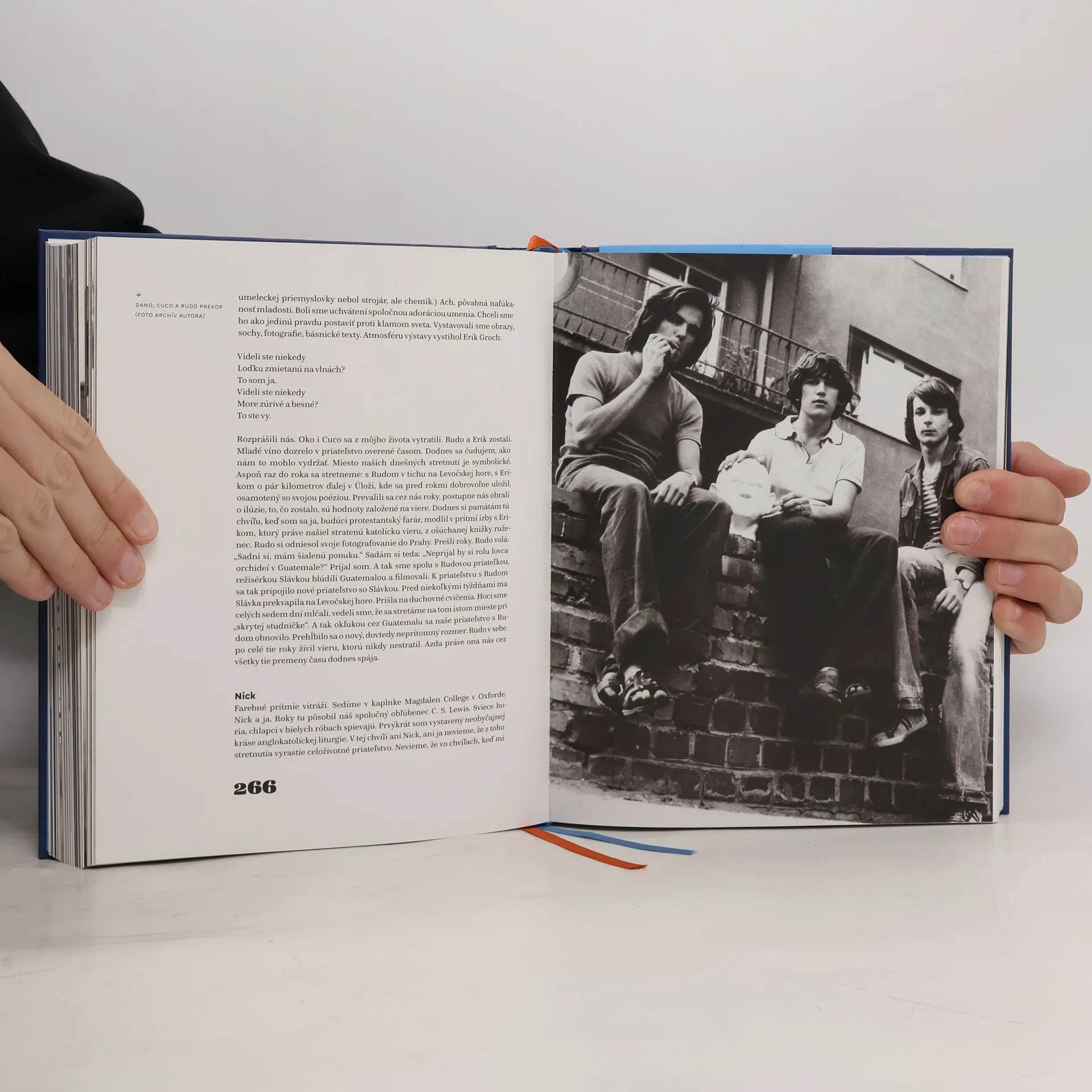 „Na kúrenie je najlepšie staré drevo, na pitie staré víno, na čítanie starí autori a na dôverné rozhovory starí priatelia“, povedal raz filozof Francis Bacon. Ako vnímajú a cítia priateľstvo dnešní významní Slováci a Česi? Čítajte veselé, smutné a možno i dojímavé vyznania našich autorov: Alexander Balogh, Vlado Bednár, Robert Bielik, Pavol Breier, Štefan Bučko, Ján Buzássy, Miroslav Cipár, Jiří Černý, Miroslav Donutil, Dušan Dušek, Kornel Földvári, Karel Fuksa, Fedor Gál, Marián Geišberg, Arnošt Goldflam, Marián Hatala, Michal Havran, Jiří Hlušička, Michal Hvorecký, Peter Chalupa, František Jablonovský, Tomáš Janovic, Ladislav Jurkemik, Dušan Kállay, Vlado Kordoš, Dušan Kováč, František Kovár, Peter Krištúfek, Valerij Kupka, Ivan Lehotský, Lukáš Luk, Jan Lukeš, Miroslav Marcelli, Martin Marenčin, Milan Markovič, Jiří Menzel, Peter Michalica, Peter Michalovič, Alois Mikulka, Dušan Mitana, Juraj Mojžiš, Martin Mojžiš, Karol Moravčík, Juraj Nvota, Erik Ondrejička, Daniel Pastirčák, Jiří Pecha, Peter Petiška, Rasťo Piško, Ondrej Prostredník, Martin C. Putna, Stanislav Rakús, Peter Roller, Július Satinský, Juraj Sidorenko, Milan Sládek, Miloslav Smetana, Jiří Stránský, Jozef Strauss, Jiří Suchý, Martin Šeďo, Vlado Šimko, Stanislav Štepka, Ján Štrasser, Jozef Uhliarik, Petr Ulrych, Pavel Vácha, Marián Vanek, Pavel Váně, Alexander Vencel st., Pavel Vilikovský, Jiří Vondrák, Peter Zajac, Mnislav Zelený Atapana, Jiří Žáček, Jajkele.