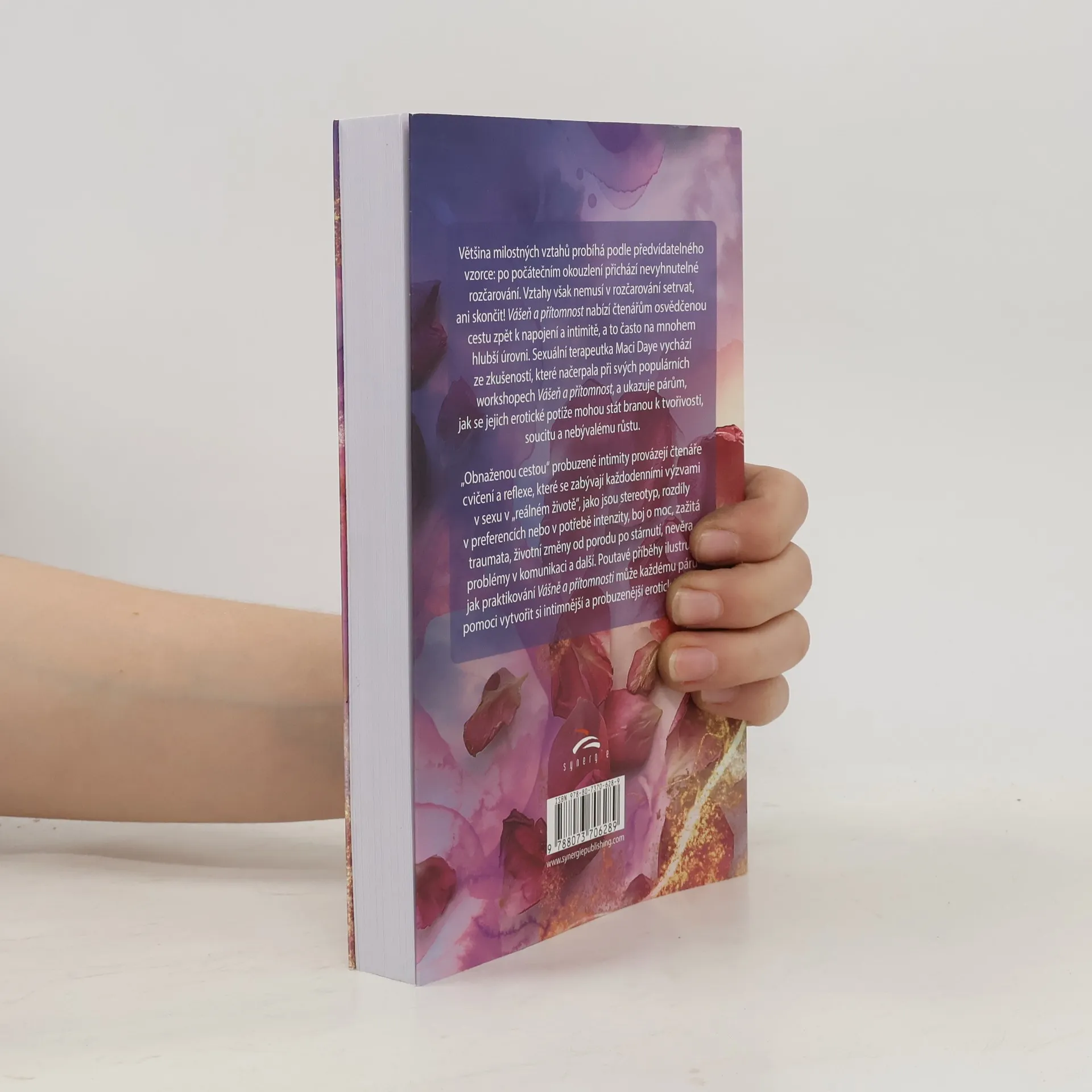 Průvodce pro páry na cestě k probuzené intimitě a vědomé sexualitěVětšina milostných vztahů probíhá podle předvídatelného vzorce: po počátečním okouzlení přichází nevyhnutelné rozčarování. Vztahy však nemusí v rozčarování setrvat, ani skončit! Vášeň a přítomnost nabízí čtenářům osvědčenou cestu zpět k napojení a intimitě, a to často na mnohem hlubší úrovni. Sexuální terapeutka Maci Daye vychází ze zkušeností, které načerpala při svých populárních workshopech Vášeň a přítomnost, a ukazuje párům, jak se jejich erotické potíže mohou stát branou k tvořivosti, soucitu a nebývalému růstu.Tím, co skutečně probouzí intimitu, není zaměření se na nové vzrušení, techniky nebo pozice, ale vědomý a všímavý přístup. Vědomý nebo všímavý přístup se odehrává ve vašem vědomí, ne ve vašem chování. Všímavý přístup není o tom, že se snažíme něco překonat, nebo že je něco „špatně“ a musí se to „opravit“. Otázkou je, jak můžeme v dlouhodobém vztahu zůstat eroticky živí, přesto že se tak důvěrně známe a jsme na sebe až příliš zvyklí. Všímavost, tedy uvědomování si přítomného okamžiku, vytváří otevřený a zvídavý stav mysli, který nám umožňuje prožívat jakékoli setkání, jako by to bylo poprvé. Všímavost může párům pomoci zažívat novost jako trvalý rys jejich sexuálních setkání, místo aby se spoléhaly na nové techniky, které jim to v posteli oživí.