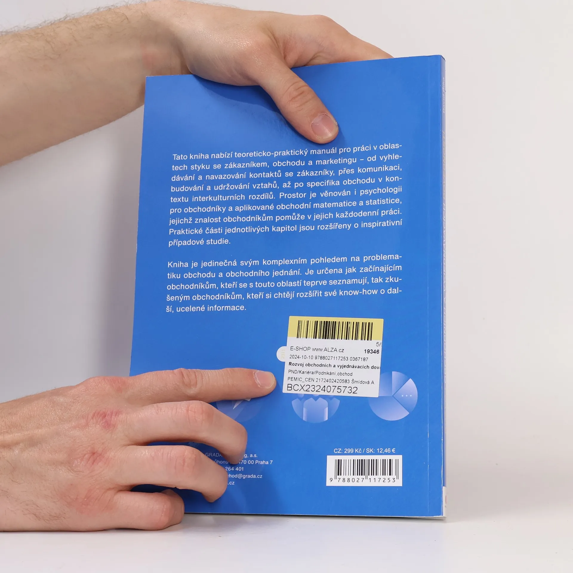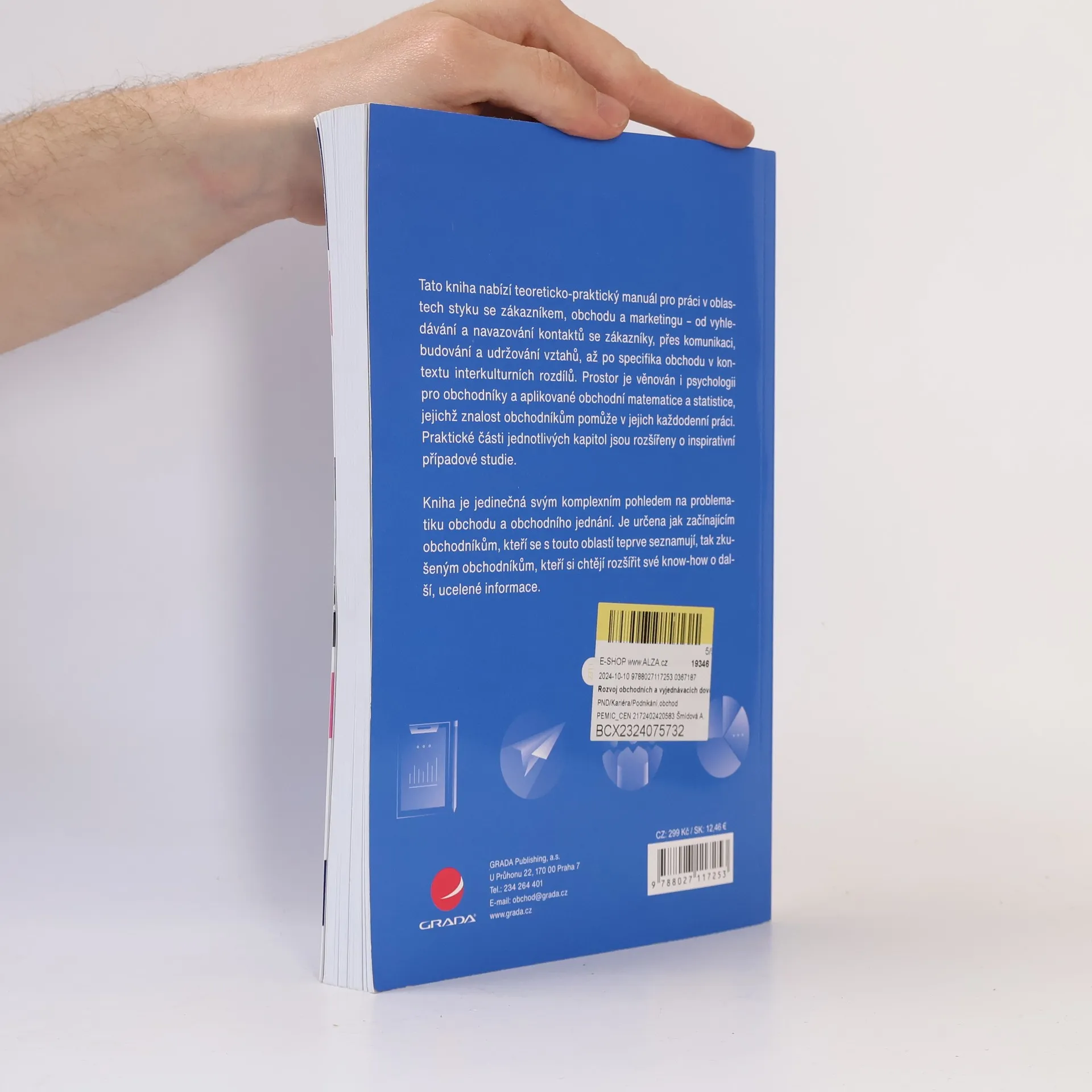 Tato kniha nabízí teoreticko-praktický manuál pro práci v oblastech styku se zákazníkem, obchodu a marketingu – od vyhledávání a navazování kontaktů se zákazníky, přes komunikaci, budování a udržování vztahů, až po specifika obchodu v kontextu interkulturních rozdílů. Prostor je věnován i psychologii pro obchodníky a aplikované obchodní matematice a statistice, jejichž znalost obchodníkům pomůže v jejich každodenní práci. Praktické části jednotlivých kapitol jsou rozšířeny o inspirativní případové studie. Kniha je jedinečná svým komplexním pohledem na problematiku obchodu a obchodního jednání. Je určena jak začínajícím obchodníkům, kteří se s touto oblastí teprve seznamují, tak zkušen