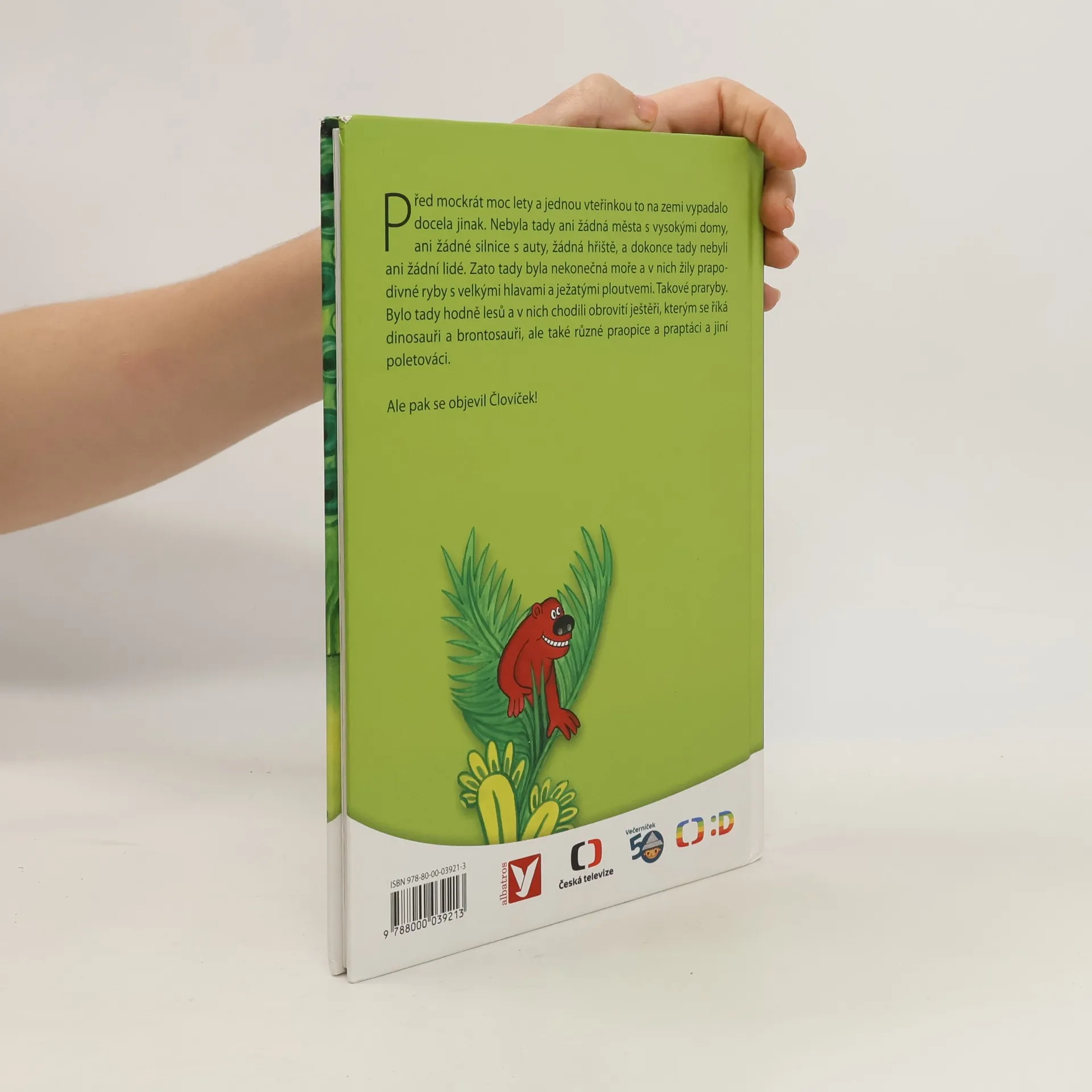 Před mockrát moc lety a jednou vteřinkou to na zemi vypadalo docela jinak. Nebyla tady ani žádná města s vysokými domy, ani žádné silnice s auty, žádná hřiště, a dokonce tady nebyli ani žádní lidé. Zato tady byla nekonečná moře a v nich žily prapodivné ryby s velkými hlavami a ježatými ploutvemi. Takové praryby. Bylo tady hodně lesů a v nich chodili obrovité ještěři, kterým se říká dinosauři brontosauři, ale také různé praopice a praptáci a jiní poletováci. Ale pak se objevil Človíček!