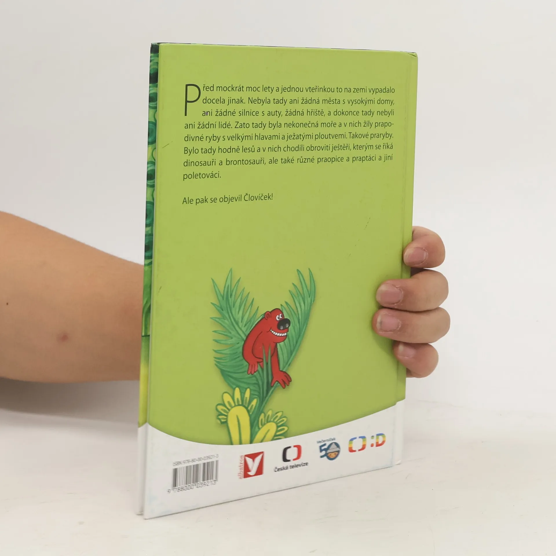 Před mockrát moc lety a jednou vteřinkou to na zemi vypadalo docela jinak. Nebyla tady ani žádná města s vysokými domy, ani žádné silnice s auty, žádná hřiště, a dokonce tady nebyli ani žádní lidé. Zato tady byla nekonečná moře a v nich žily prapodivné ryby s velkými hlavami a ježatými ploutvemi. Takové praryby. Bylo tady hodně lesů a v nich chodili obrovité ještěři, kterým se říká dinosauři brontosauři, ale také různé praopice a praptáci a jiní poletováci. Ale pak se objevil Človíček!