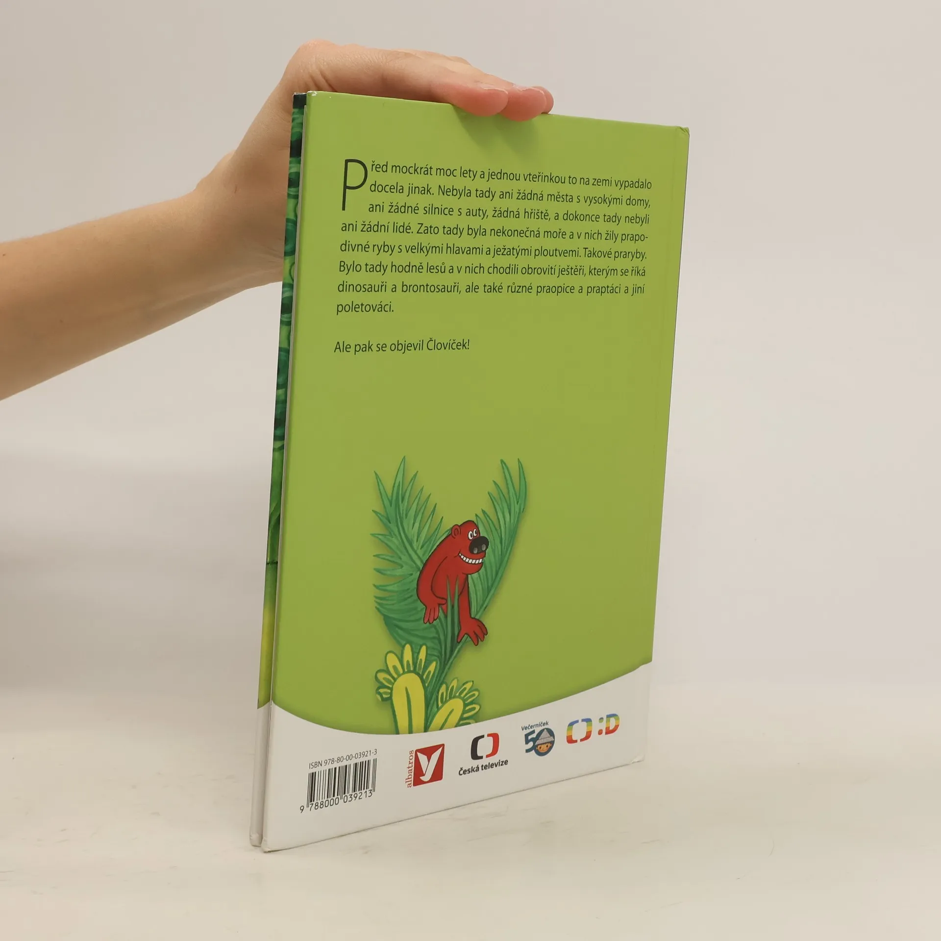 Před mockrát moc lety a jednou vteřinkou to na zemi vypadalo docela jinak. Nebyla tady ani žádná města s vysokými domy, ani žádné silnice s auty, žádná hřiště, a dokonce tady nebyli ani žádní lidé. Zato tady byla nekonečná moře a v nich žily prapodivné ryby s velkými hlavami a ježatými ploutvemi. Takové praryby. Bylo tady hodně lesů a v nich chodili obrovité ještěři, kterým se říká dinosauři brontosauři, ale také různé praopice a praptáci a jiní poletováci. Ale pak se objevil Človíček!