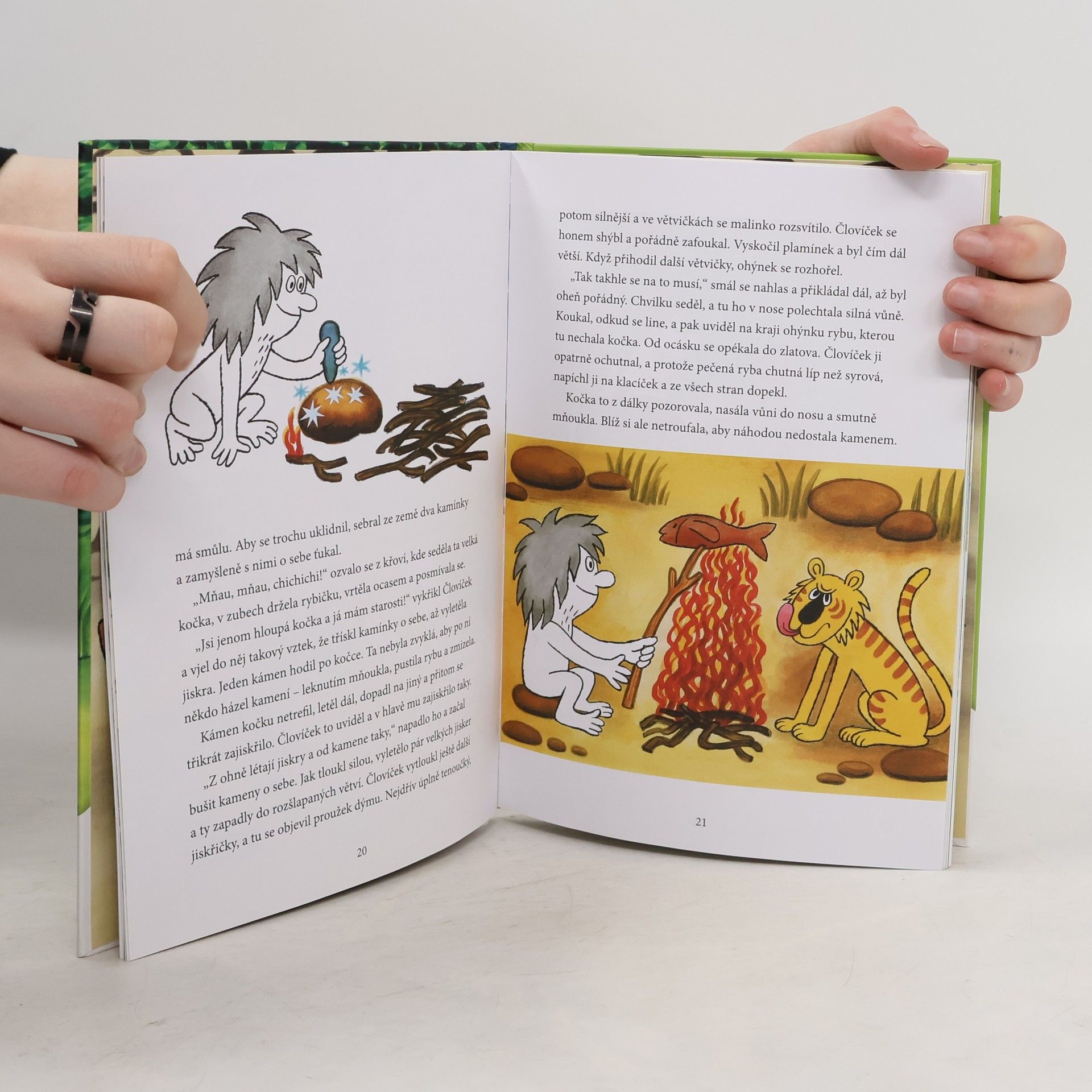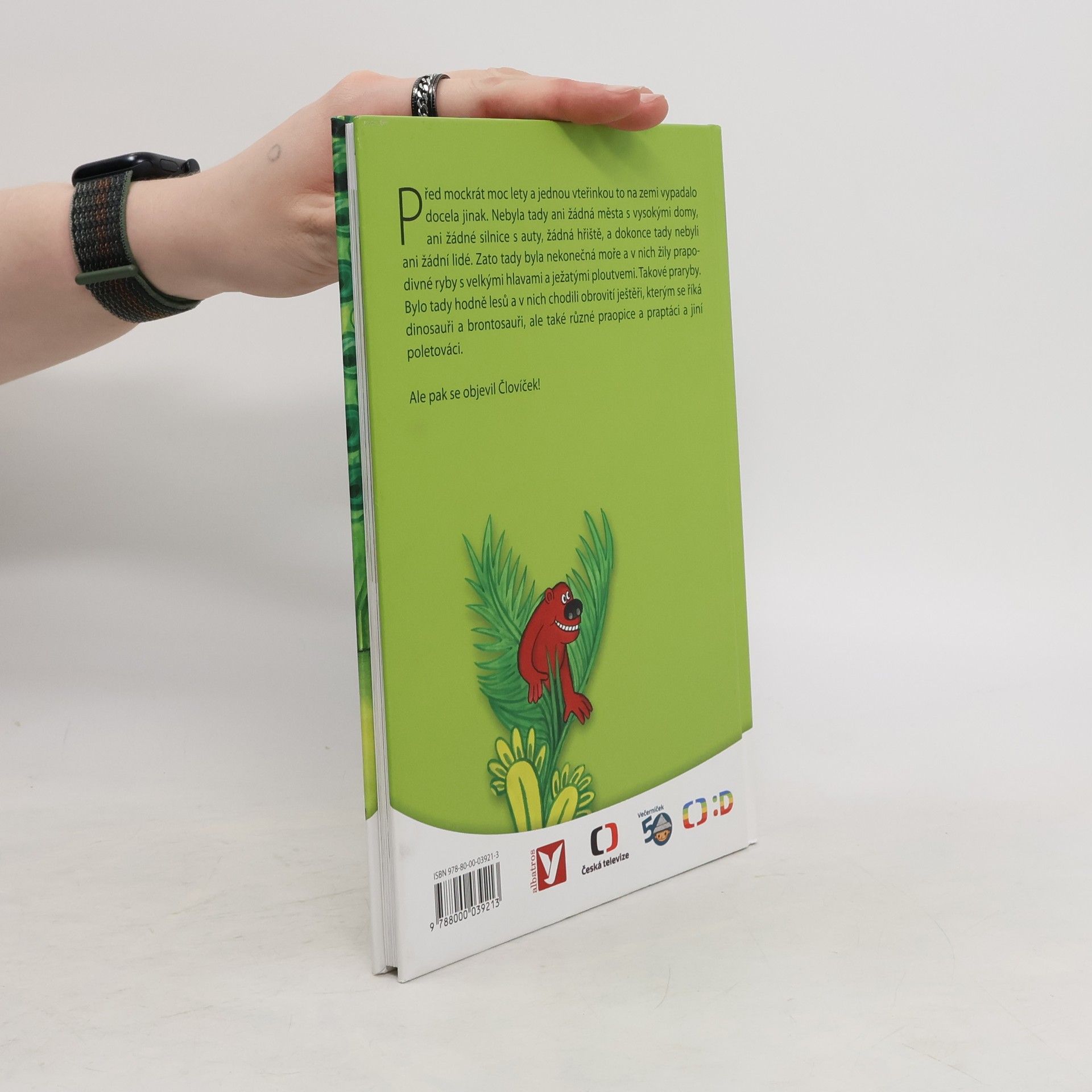 Před mockrát moc lety a jednou vteřinkou to na zemi vypadalo docela jinak. Nebyla tady ani žádná města s vysokými domy, ani žádné silnice s auty, žádná hřiště, a dokonce tady nebyli ani žádní lidé. Zato tady byla nekonečná moře a v nich žily prapodivné ryby s velkými hlavami a ježatými ploutvemi. Takové praryby. Bylo tady hodně lesů a v nich chodili obrovité ještěři, kterým se říká dinosauři brontosauři, ale také různé praopice a praptáci a jiní poletováci. Ale pak se objevil Človíček!