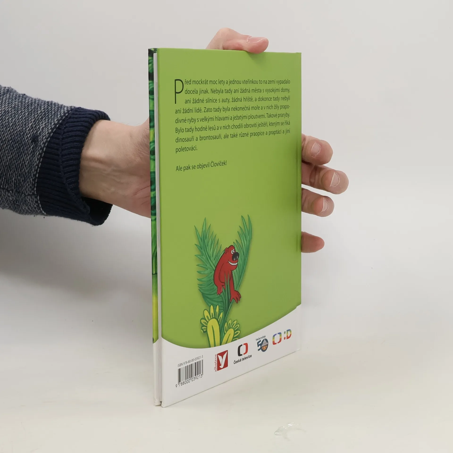 Před mockrát moc lety a jednou vteřinkou to na zemi vypadalo docela jinak. Nebyla tady ani žádná města s vysokými domy, ani žádné silnice s auty, žádná hřiště, a dokonce tady nebyli ani žádní lidé. Zato tady byla nekonečná moře a v nich žily prapodivné ryby s velkými hlavami a ježatými ploutvemi. Takové praryby. Bylo tady hodně lesů a v nich chodili obrovité ještěři, kterým se říká dinosauři brontosauři, ale také různé praopice a praptáci a jiní poletováci. Ale pak se objevil Človíček!