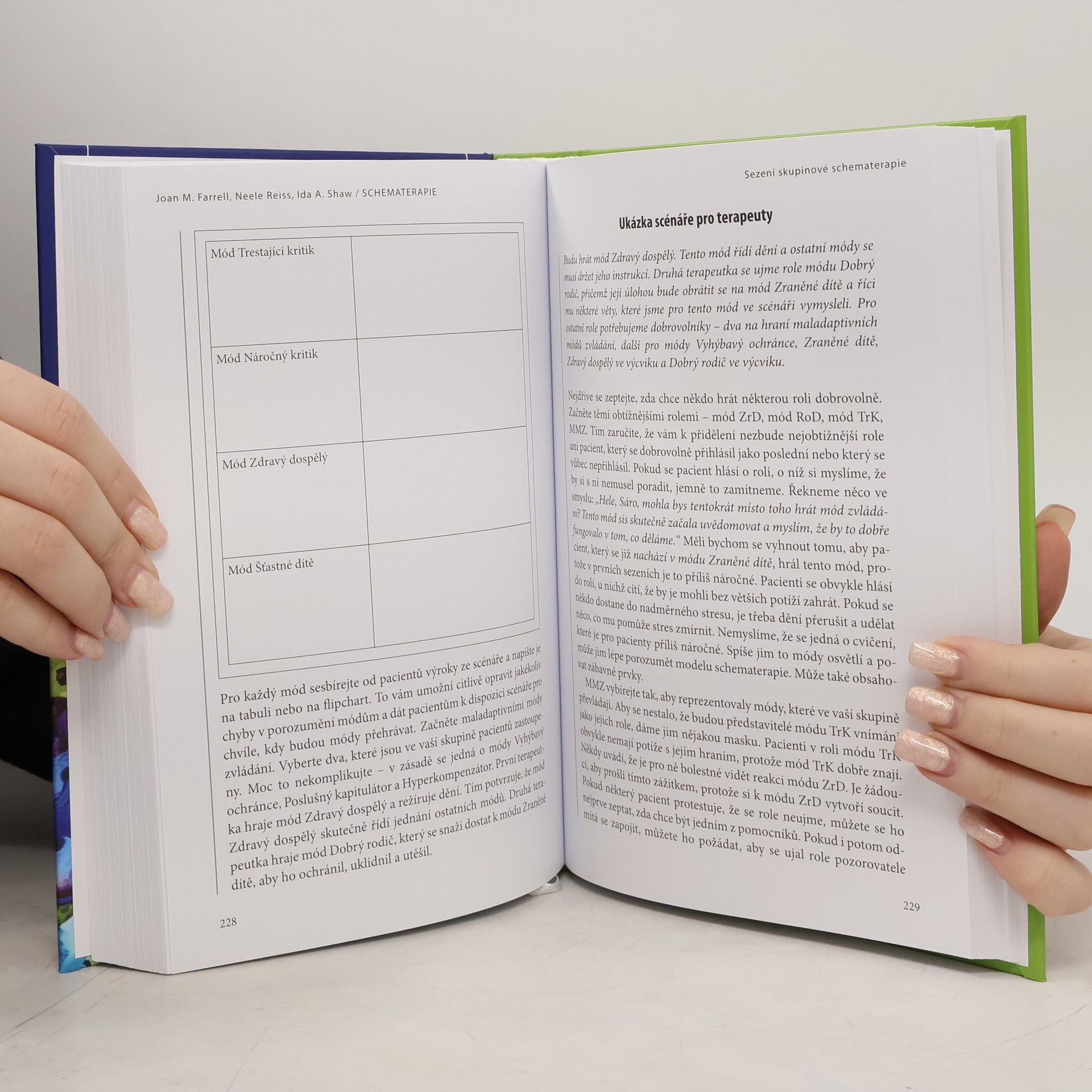 Schematerapie jako psychoterapeutická metoda vychází z kognitivně-behaviorální terapie, do níž se prolnuly prvky gestalt terapie a dynamické terapie. Pracuje se specifickými termíny jako např. raná maladaptivní schémata (negativní jádrová přesvědčení o sobě a okolí) či ohraničeně opakované rodičovství (terapeut přistupuje ke klientovi, který je v tzv. módu zraněného dítěte, jako laskavý a chápající rodič). Autorky předložené publikace modifikovaly původně individuální schematerapii tak, aby bylo možné použít ji i při práci ve skupině. Opírají se o model tzv. psychických módů (aktuálních stavů mysli) a umožňují pacientům, aby trvale změnili pohled na sebe i na druhé. Efekt schematerapie se prokázal zejména u jedinců s hraniční poruchou osobnosti a obecně u těch, kterým běžná psychoterapie obvykle nedokáže příliš pomoci. Přístup popsaný v této knize bude nepochybně inspirací pro psychoterapeuty a přínosem pro jedince s dlouhodobými psychickými problémy.