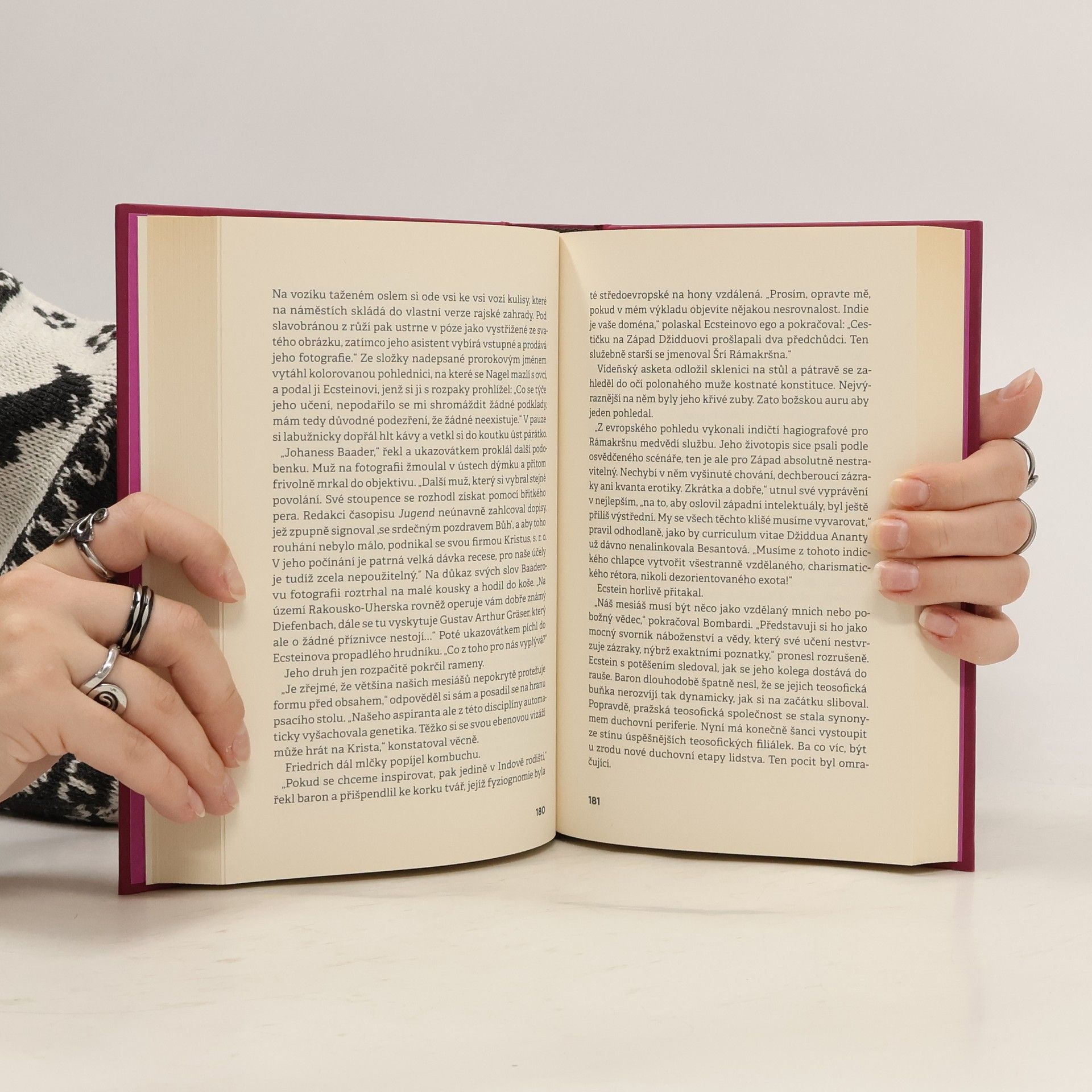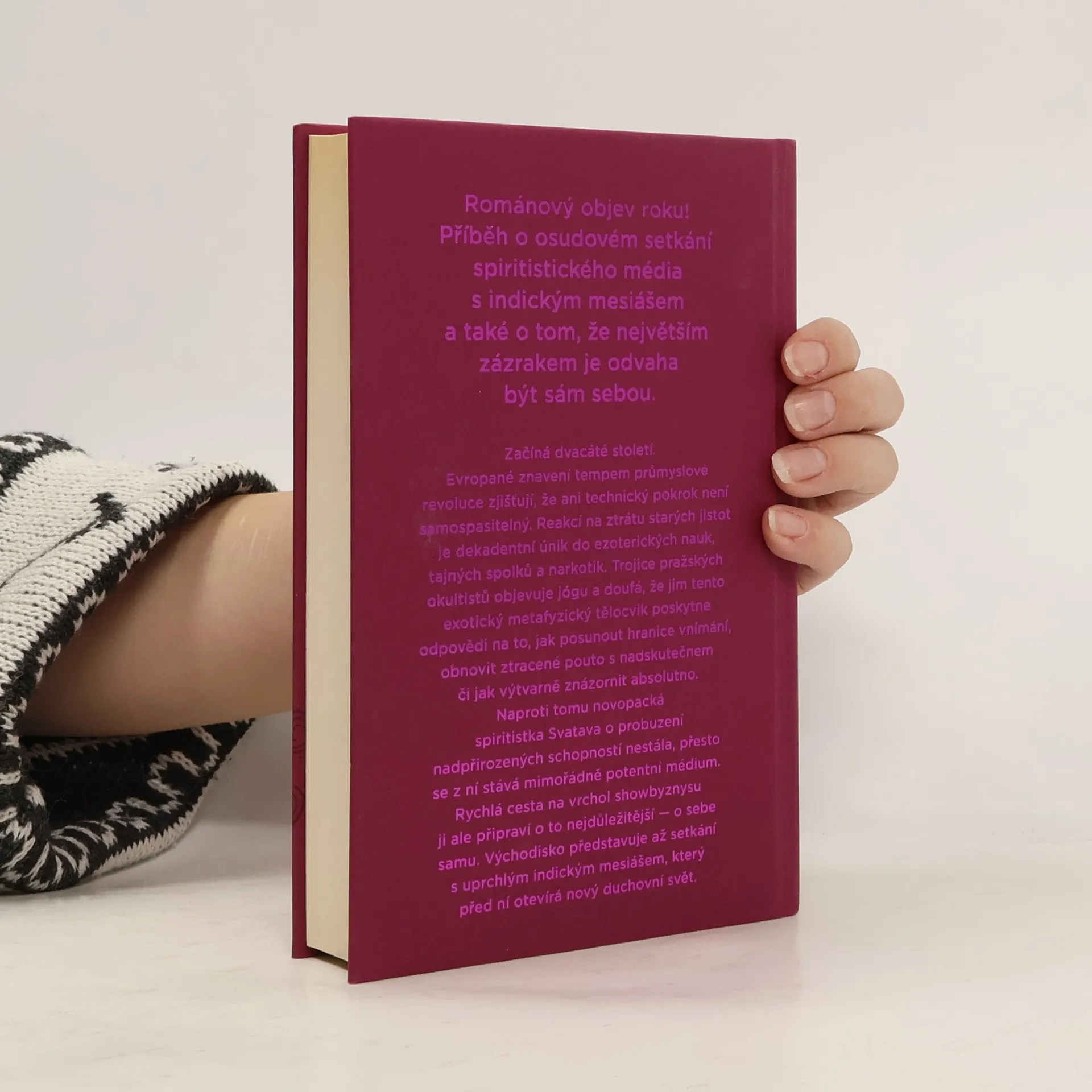 Svatí a kouzelníci v předválečné Praze Začíná dvacáté století. Evropané znavení tempem průmyslové revoluce zjišťují, že ani technický pokrok není samospásný. Reakcí na ztrátu starých jistot je dekadentní únik do ezoterických nauk, tajných spolků a narkotik. Trojice pražských okultistů objevuje jógu a doufá, že jim tento exotický metafyzický tělocvik poskytne odpovědi na to, jak posunout hranice vnímání, obnovit ztracené pouto s nadskutečnem či jak výtvarně znázornit absolutno. Naproti tomu novopacká spiritistka Svatava o probuzení nadpřirozených sil nestála, přesto se z ní stává mimořádně potentní médium. Rychlá cesta na vrchol showbyznysu ji ale připraví o to nejdůležitější — o sebe samu. Východisko přináší až setkání s uprchlým indickým mesiášem, který před ní otevírá nový duchovní svět. Text Jolanty Trojak vychází z žánru okultistického románu, zdaleka však u něj nezůstává. Květnatý sloh střídá nadčasový rytmický text zkoumající otázky základního lidského údělu a naplnění vlastního potenciálu.