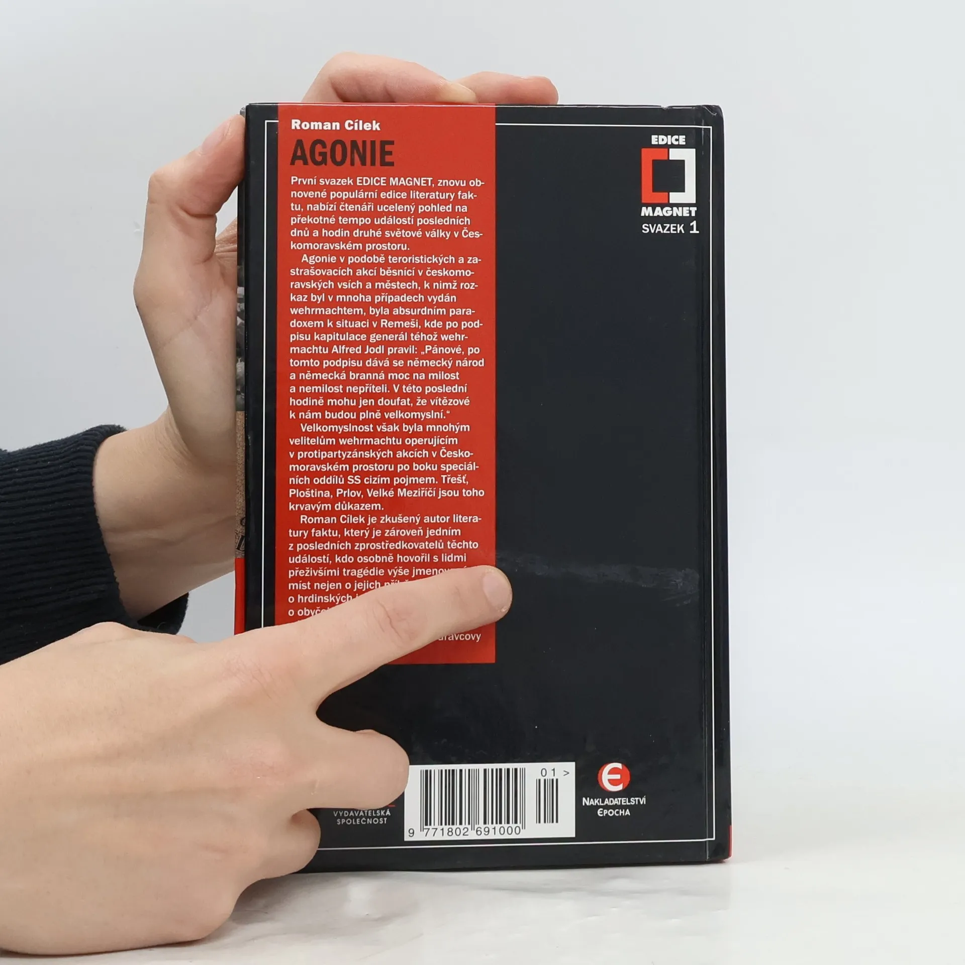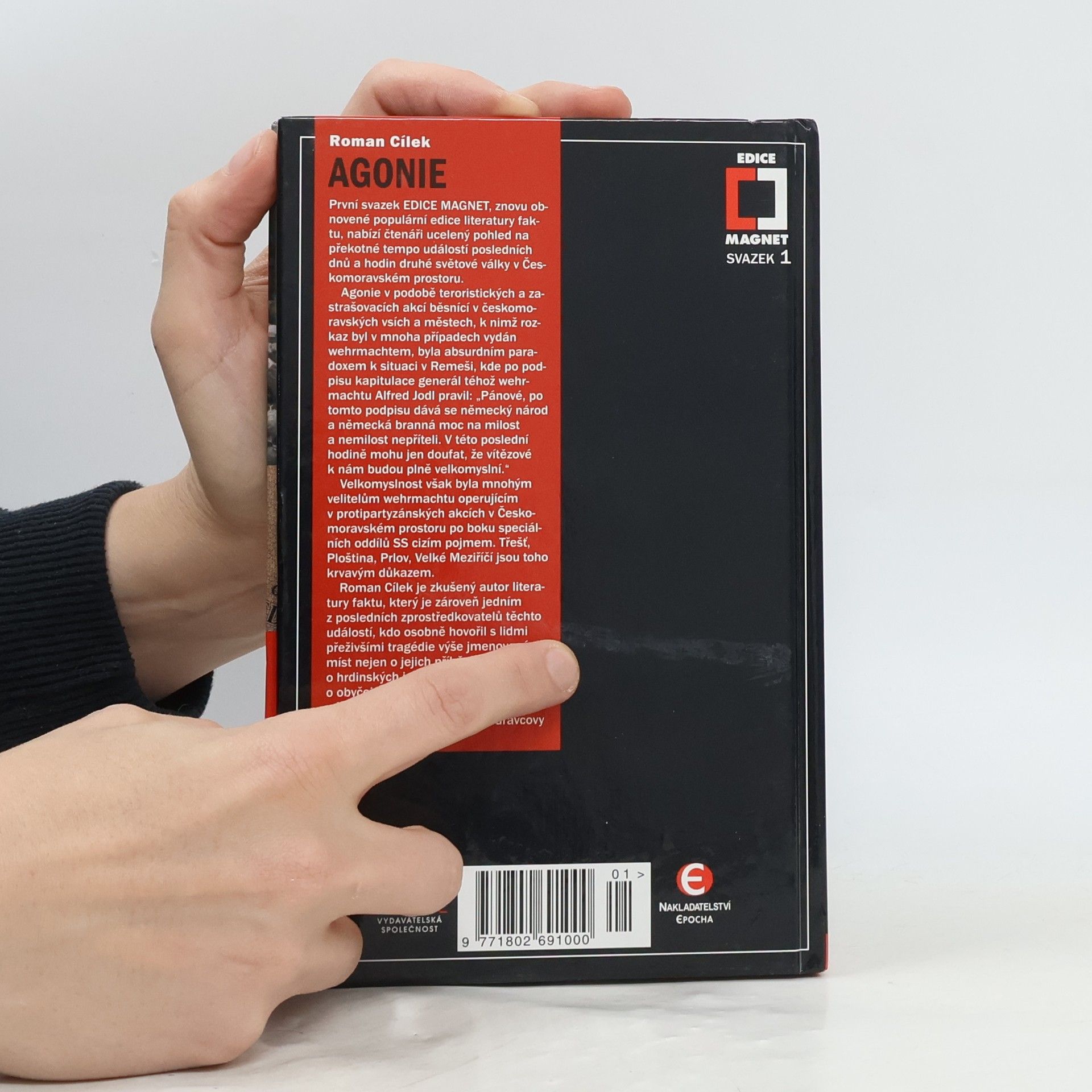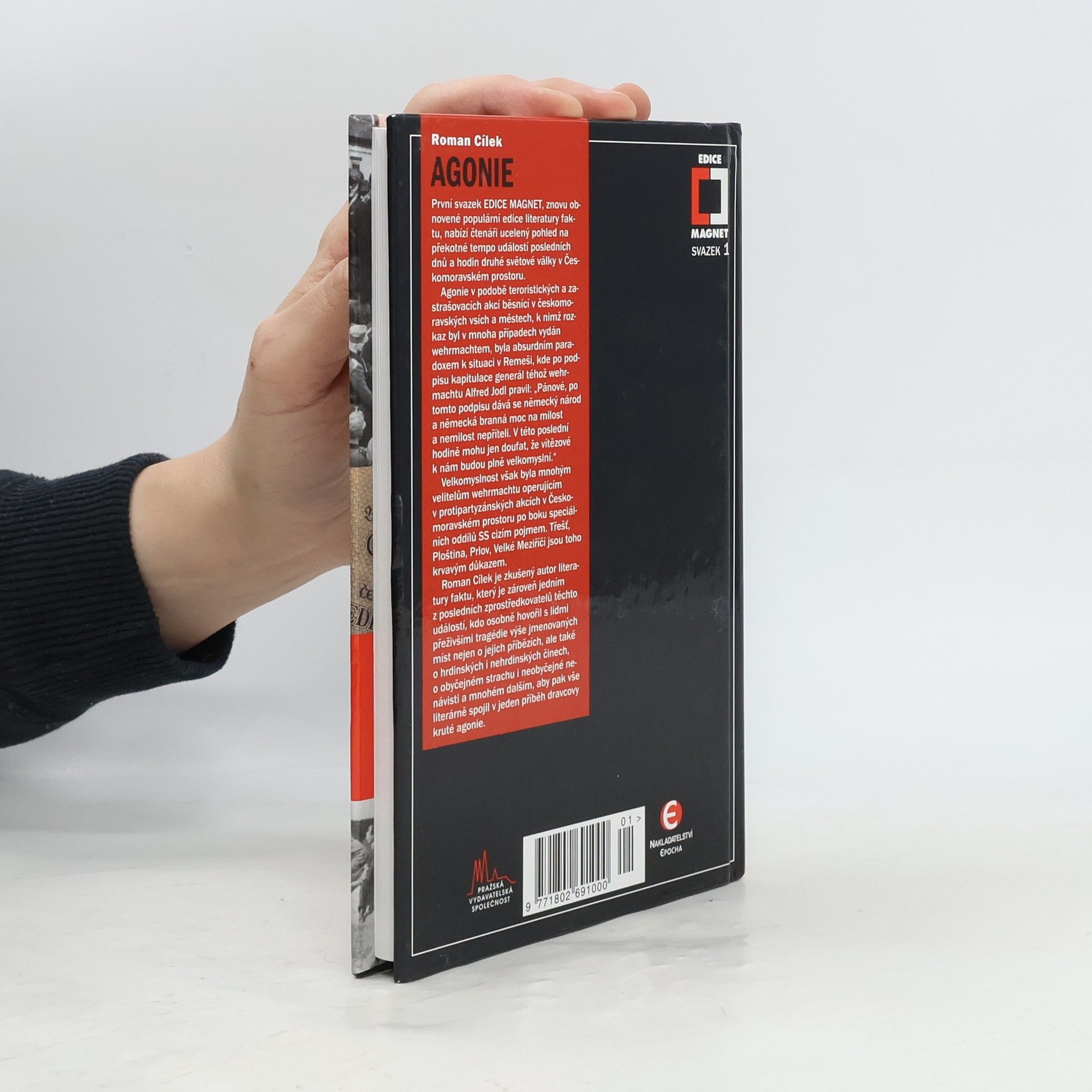 První svazek znovuobnovené EDICE MAGNET nabízí ucelený pohled na události posledních dnů a hodin druhé světové války v Českomoravském prostoru. Agonie v podobě teroristických a zastrašovacích akcí v českomoravských vsích a městech byla absurdním paradoxem k situaci v Remeši, kde po podpisu kapitulace generál Alfred Jodl pravil: Pánové, po tomto podpisu dává se německý národ a německá branná moc na milost a nemilost nepříteli. V této poslední hodině mohu jen doufat, že vítězové k nám budou plně velkomyslní. Velkomyslnost však byla mnohým velitelům wehrmachtu operujícím v protipartyzánských akcích v Českomoravském prostoru po boku speciálních oddílů SS cizím pojmem. Třešť, Ploština, Prlov, Velké Meziříčí jsou toho krvavým důkazem. Zkušený autor literatury faktu, který je zároveň jedním z posledních, kdo osobně hovořil s lidmi přeživšími tragédie výše jmenovaných míst nejen o jejich příbězích, ale také o hrdinských i nehrdinských činech, o obyčejném strachu i neobyčejné nenávisti, aby pak vše literárně spojil v jeden příběh dravcovy kruté agonie.
