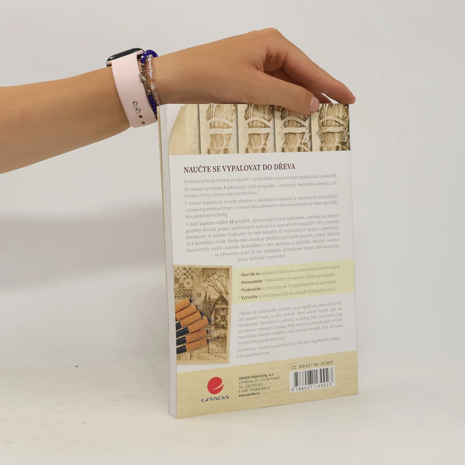 Máte-li rádi práci se dřevem, rozšiřte si své umělecké dovednosti i o kreativní techniku vypalování elektrickým perem nebo pájkou do dřeva. Komplexní průvodce od zkušené autorky poskytne potřebné pokyny pro všechny základní styly tohoto oboru. Kresbu siluet, grafírování, šrafování, tečkování, jiné textury, plošné stínování až po iluzi malby. V úvodní galerii je popsáno a vysvětleno celkem 31 využitelných základních vzorů, s nimiž pak snadno vytvoříte realistické portréty lidí a zvířat, motivy květin, krajiny, architektury a dalších objektů. Inspirovat se můžete i 12 projekty s detailními postupy a fotografiemi každého kroku.