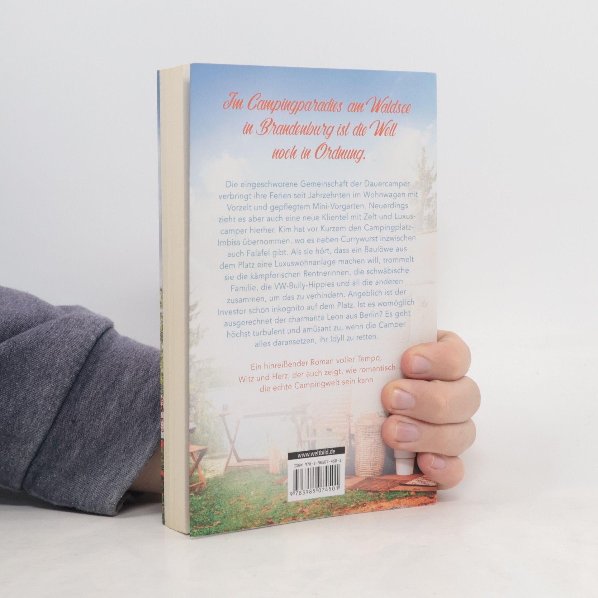Im Campingparadies am Waldsee in Brandenburg ist die Welt noch in Ordnung. Die eingeschworene Gemeinschaft der Dauercamper verbringt ihre Ferien seit Jahrzehnten im Wohnwagen mit Vorzelt und gepflegtem Mini-Vorgarten. Neuerdings zieht es aber auch eine neue Klientel mit Zelt und Luxuscamper hierher. Kim hat vor Kurzem Elli's Imbiß übernommen, wo es neben Currywurst inzwischen auch Falafel gibt. Als sie hört, dass ein Baulöwe aus dem Platz eine Luxuswohnanlage machen will, trommelt sie die kämpferischen Rentnerinnen, die schwäbische Familie, die VW-Bully-Hippies und all die anderen zusammen, um das zu verhindern. Angeblich ist der Investor schon inkognito auf dem Platz. Ist es womöglich ausgerechnet der charmante Leon aus Berlin? Es geht höchst turbulent und amüsant zu, wenn die Camper alles daransetzen, ihr Idyll zu retten. Ein hinreißender Roman voller Tempo, Witz und Herz, der auch zeigt, wie romantisch echte Campingidylle sein kann