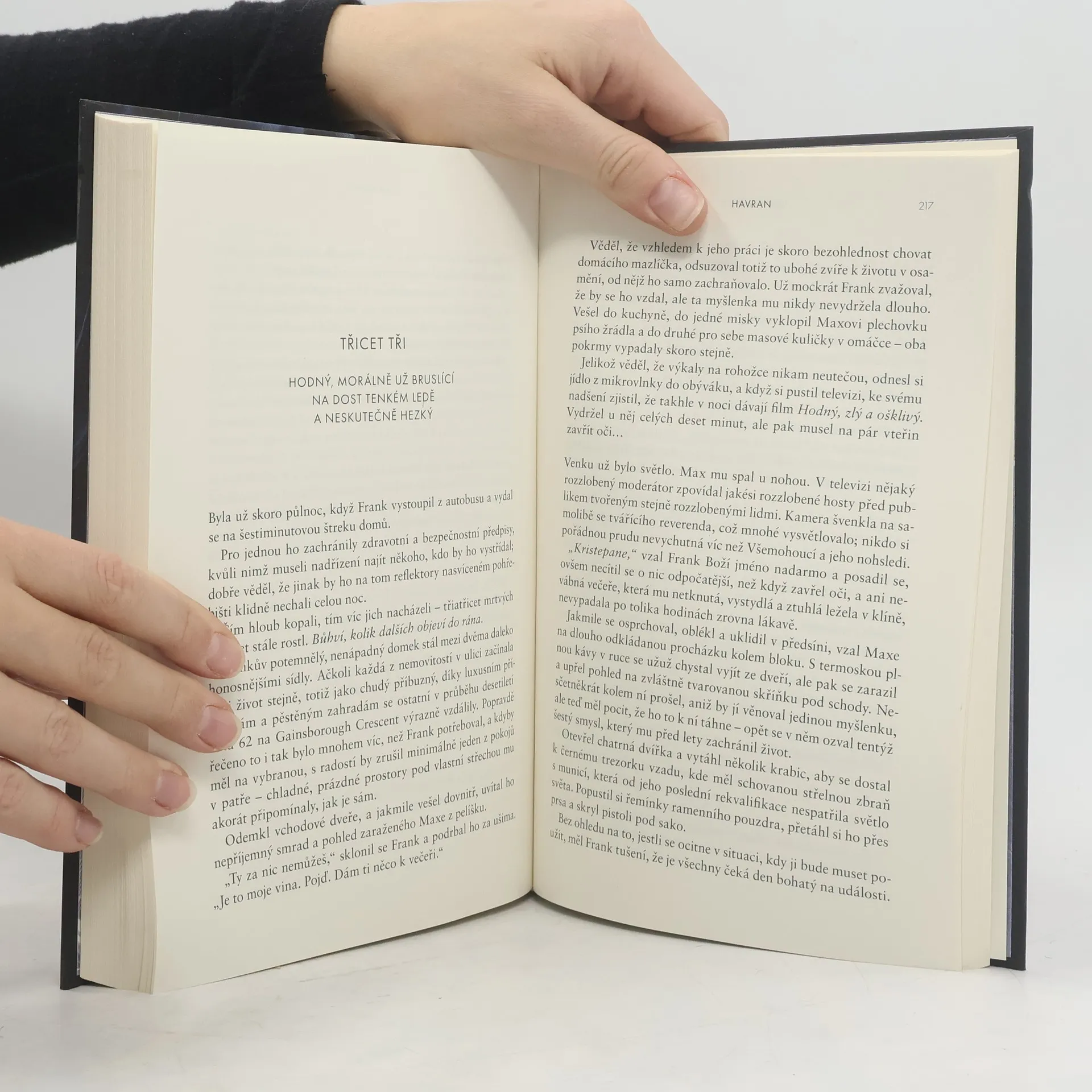 Žhavá, zábavná a neodložitelná novinka od autora bestselleru Hadrový panák. Ctižádostivá vyšetřovatelka. Okouzlující zabiják… a jejich dobrodružný hon na sériového vraha. Detektiv Scarlett Delaneyová se snaží dopadnout zločince přezdívaného Havran, jenž svým obětem uřízne hlavu, na obličeji zanechá pět škrábanců a odnese si šperk jako suvenýr, to vše za nejnemožnějších okolností. Je nepolapitelný a policie dlouho tápe, dokud Scarlett na jednom místě činu náhodou nenarazí na šarmantního Henryho, který tvrdí, že pracuje jako soukromé očko, a nabídne jí pomoc. Kamkoli se ale Henry vrtne, zůstávají po něm mrtvoly. A Havranova další akce je na spadnutí…