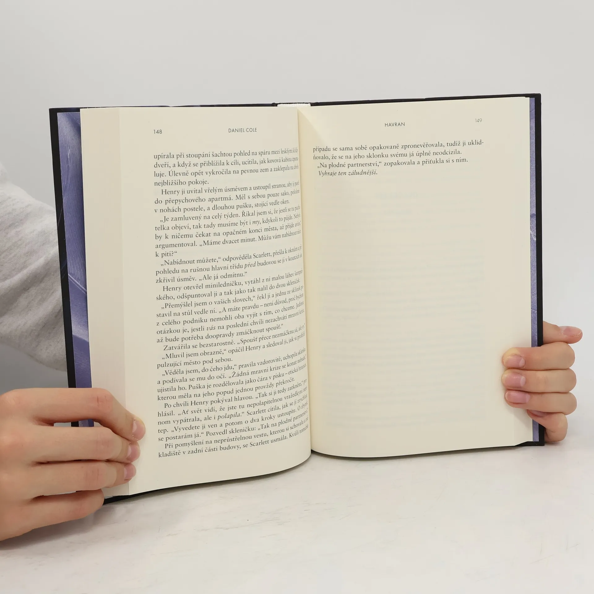 Žhavá, zábavná a neodložitelná novinka od autora bestselleru Hadrový panák. Ctižádostivá vyšetřovatelka. Okouzlující zabiják… a jejich dobrodružný hon na sériového vraha. Detektiv Scarlett Delaneyová se snaží dopadnout zločince přezdívaného Havran, jenž svým obětem uřízne hlavu, na obličeji zanechá pět škrábanců a odnese si šperk jako suvenýr, to vše za nejnemožnějších okolností. Je nepolapitelný a policie dlouho tápe, dokud Scarlett na jednom místě činu náhodou nenarazí na šarmantního Henryho, který tvrdí, že pracuje jako soukromé očko, a nabídne jí pomoc. Kamkoli se ale Henry vrtne, zůstávají po něm mrtvoly. A Havranova další akce je na spadnutí…