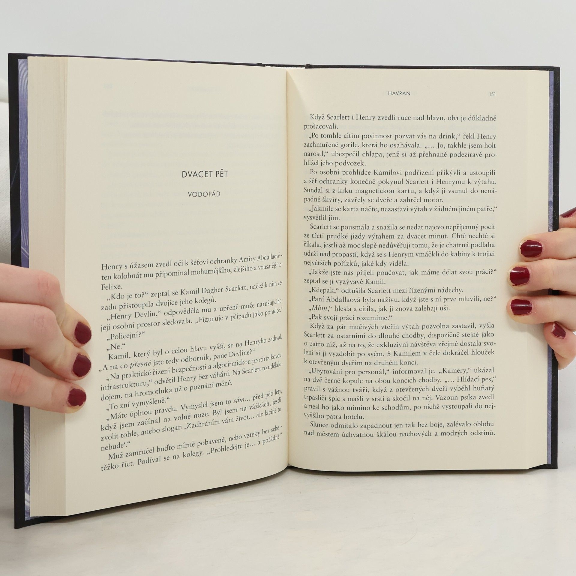Žhavá, zábavná a neodložitelná novinka od autora bestselleru Hadrový panák. Ctižádostivá vyšetřovatelka. Okouzlující zabiják… a jejich dobrodružný hon na sériového vraha. Detektiv Scarlett Delaneyová se snaží dopadnout zločince přezdívaného Havran, jenž svým obětem uřízne hlavu, na obličeji zanechá pět škrábanců a odnese si šperk jako suvenýr, to vše za nejnemožnějších okolností. Je nepolapitelný a policie dlouho tápe, dokud Scarlett na jednom místě činu náhodou nenarazí na šarmantního Henryho, který tvrdí, že pracuje jako soukromé očko, a nabídne jí pomoc. Kamkoli se ale Henry vrtne, zůstávají po něm mrtvoly. A Havranova další akce je na spadnutí…